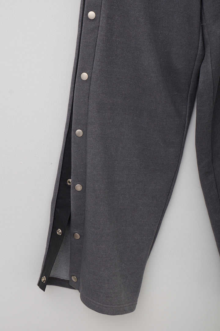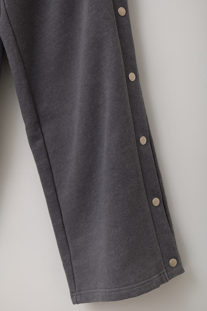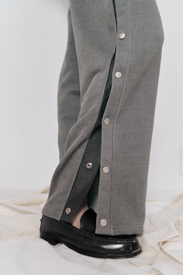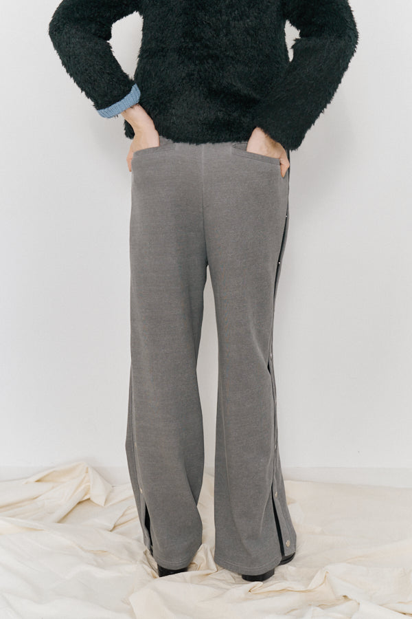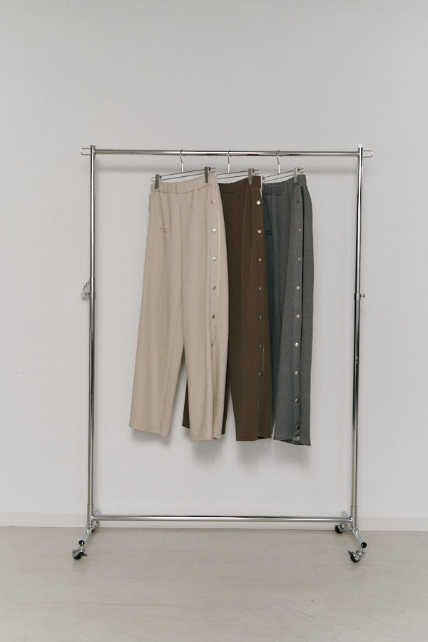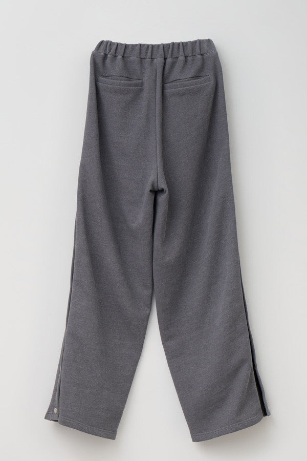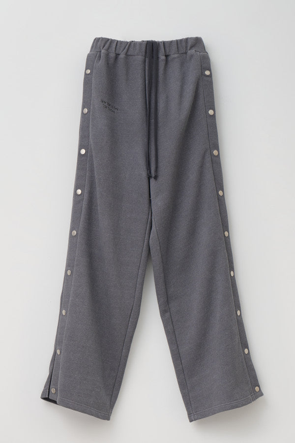 ピグメント加工で仕上げ、程よい色ムラと風合いがヴィンテージライクな雰囲気を演出するスナップボタン付きパンツ。サイドに並ぶスナップはデザインアクセントになるだけでなく、裾から膝までは開けられる仕様で、シルエットやスタイリングに変化をつけられます。ウエストはイージー仕様で快適な穿き心地。