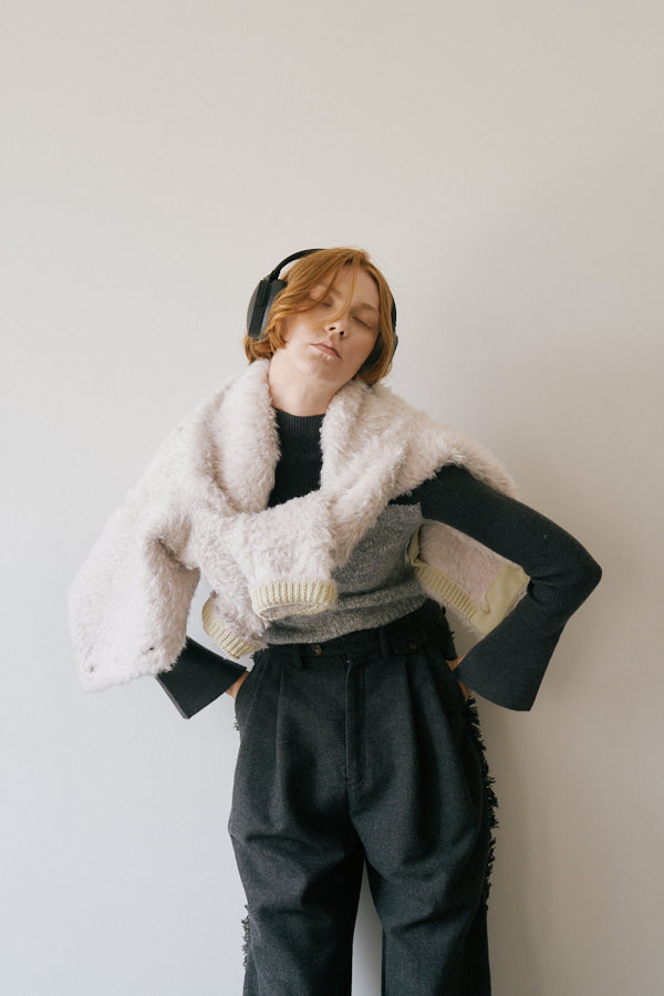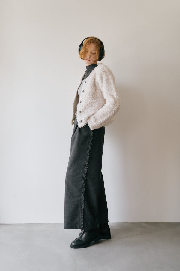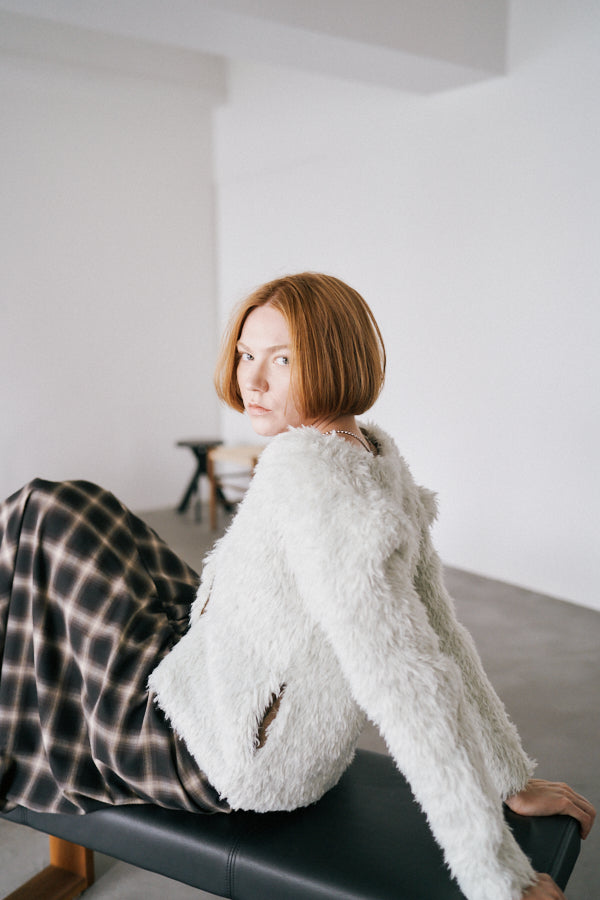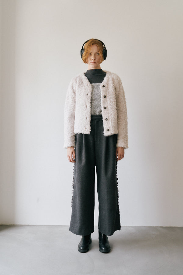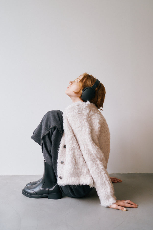 程よい厚みがあり、ライトアウター感覚で着られるのも魅力。カラーは オフホワイト、ミントグリーン、ブラック、ブラウン の4色展開。カジュアルからフェミニンまで幅広いスタイリングにマッチし、これからの季節のワードローブに欠かせない一枚です。