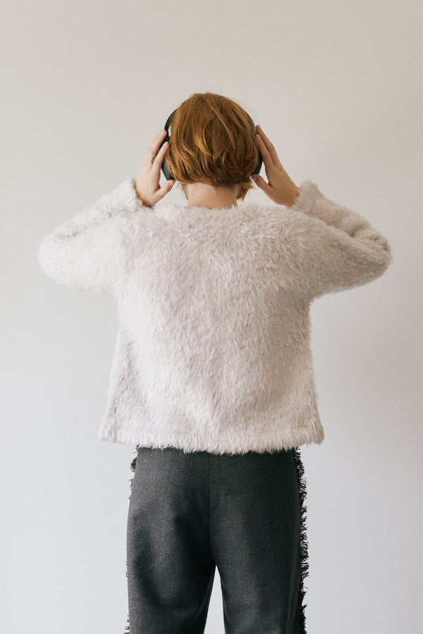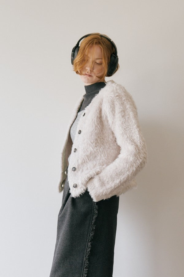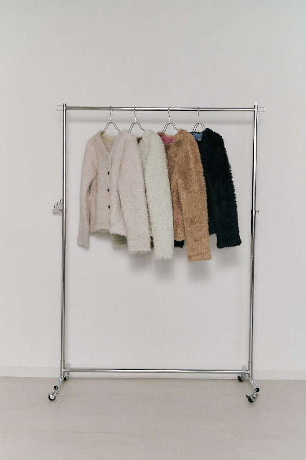 ふんわりと柔らかなニット素材で仕立てた、シーズンムード漂うカーディガン。毛足のある編地が温もりを感じさせ、羽織るだけで季節感のある着こなしを楽しめます。