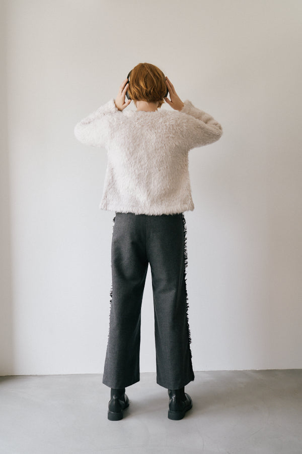 すっきりとしたクルーネックにコンパクトなシルエットで、デイリーに取り入れやすいデザイン。裾や襟ぐりからチラリと覗く配色ニットがポイントになり、シンプルな中に遊び心をプラスしています。フロントはクラシックなボタン仕様で、落ち着きのある表情に仕上げました。