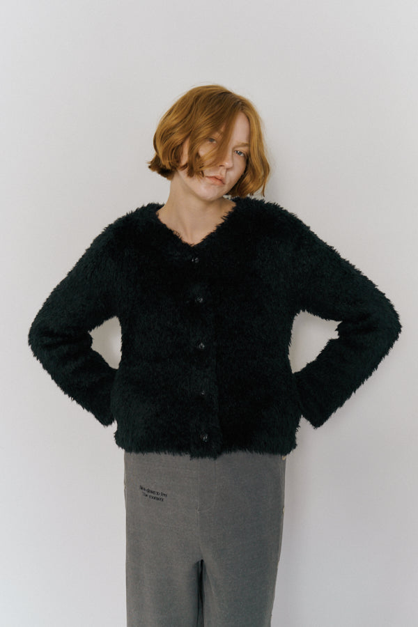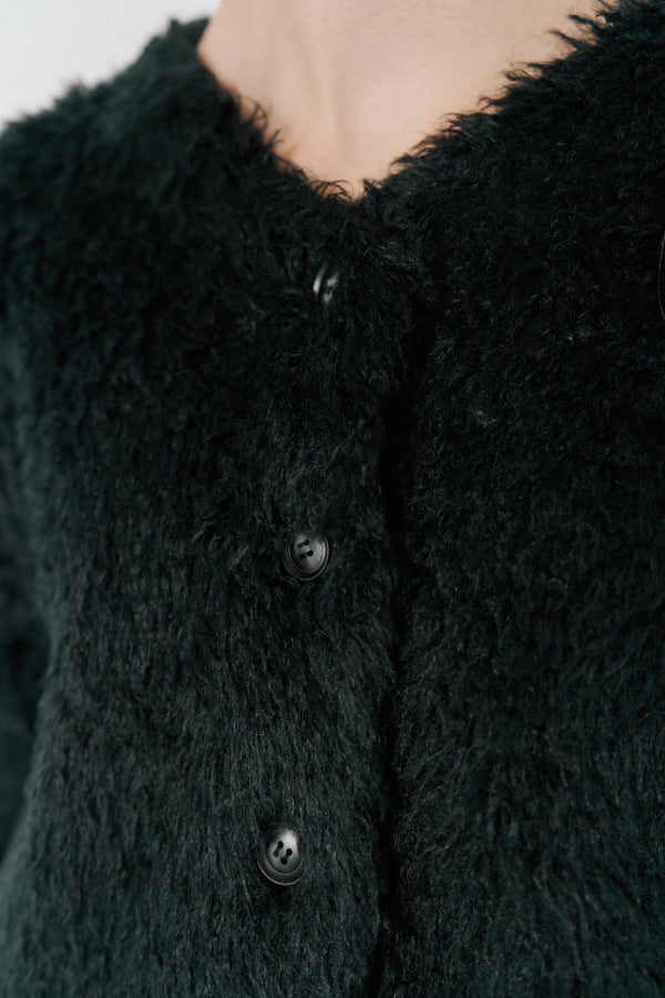 ふんわりと柔らかなニット素材で仕立てた、シーズンムード漂うカーディガン。毛足のある編地が温もりを感じさせ、羽織るだけで季節感のある着こなしを楽しめます。