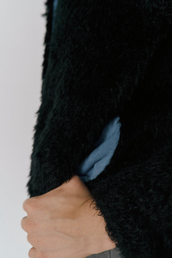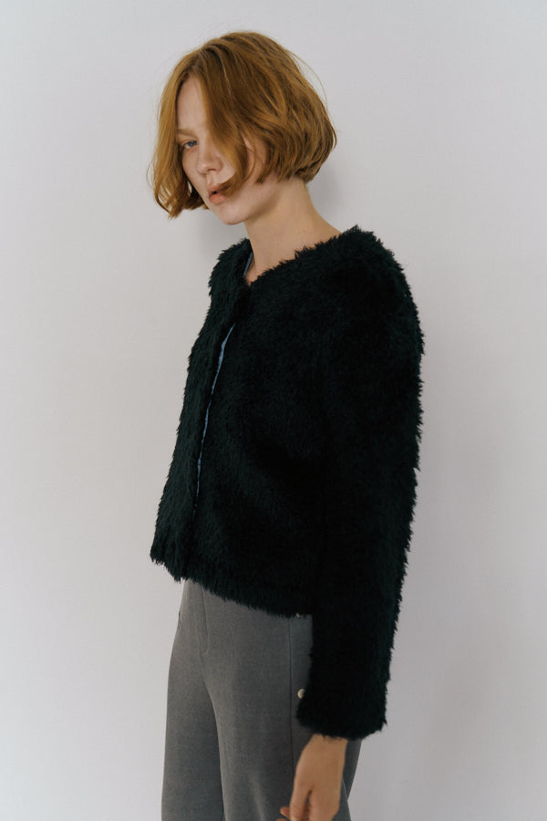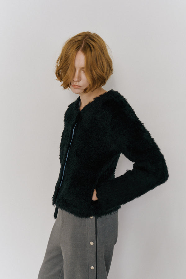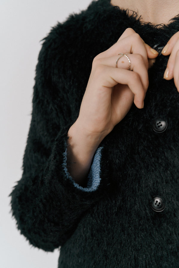 程よい厚みがあり、ライトアウター感覚で着られるのも魅力。カラーは オフホワイト、ミントグリーン、ブラック、ブラウン の4色展開。カジュアルからフェミニンまで幅広いスタイリングにマッチし、これからの季節のワードローブに欠かせない一枚です。