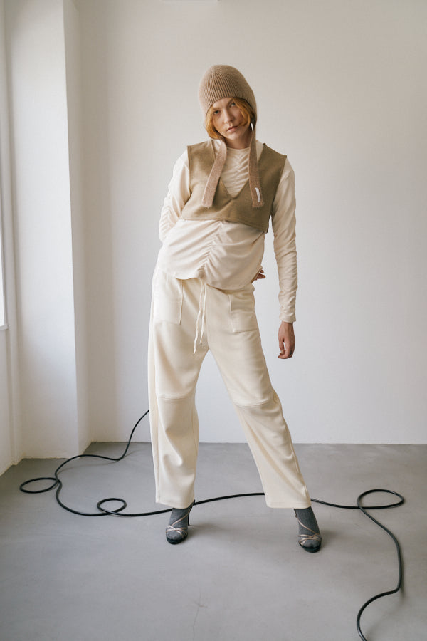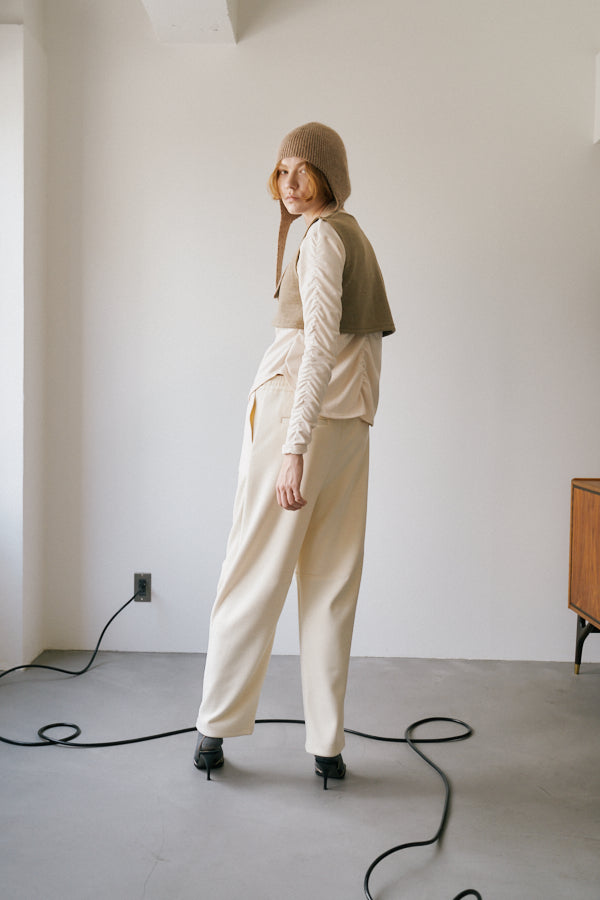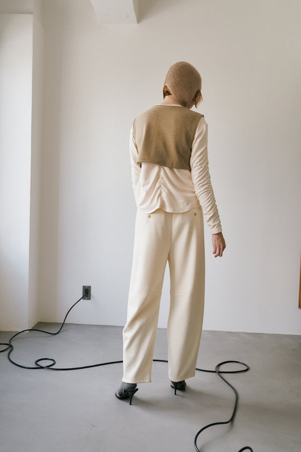こだわりの切り替えとパターンによって立体的なシルエットを実現したパンツ。穿くと自然に裾がすっきり見え、リラックス感がありながらもスタイルアップを叶えます。