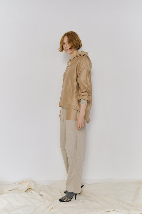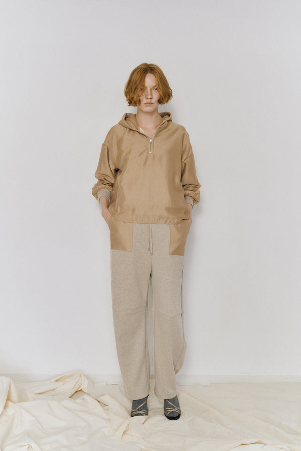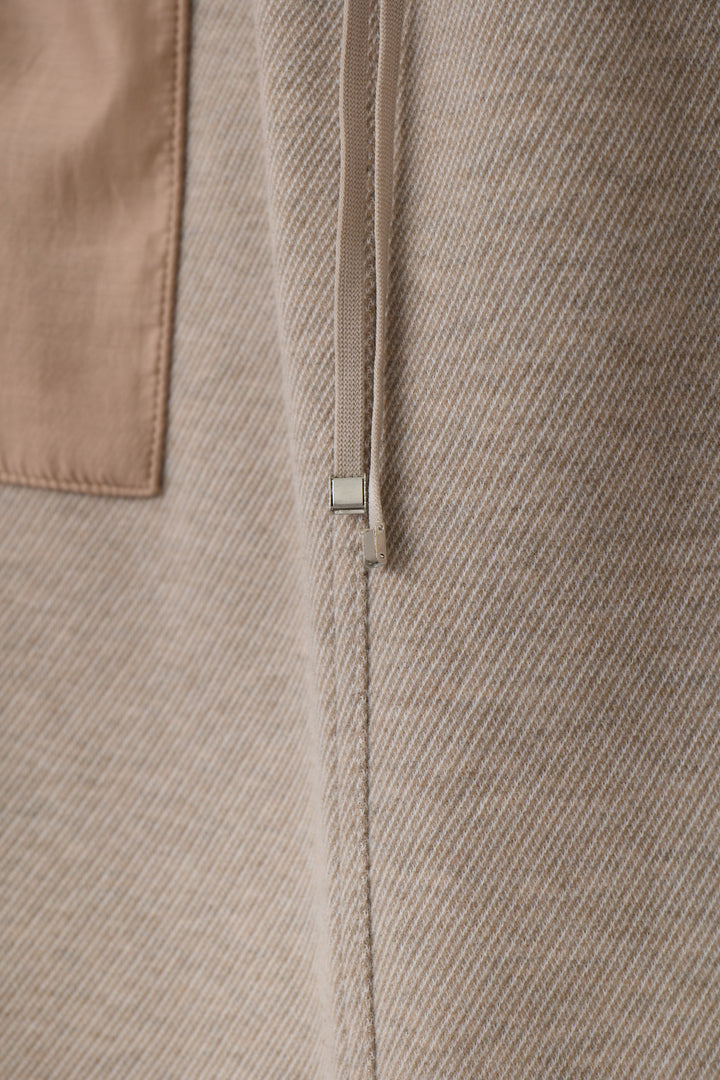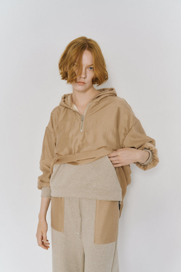 同素材のフードプルオーバーとのセットアップもおすすめで、統一感のある大人カジュアルスタイルを楽しめる一枚です。