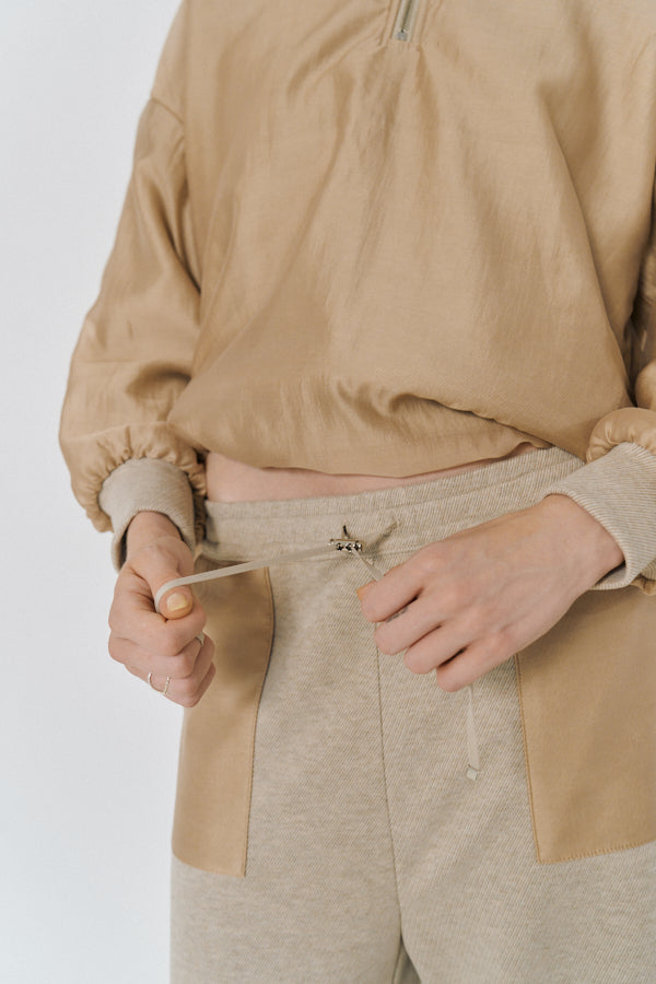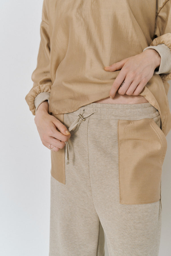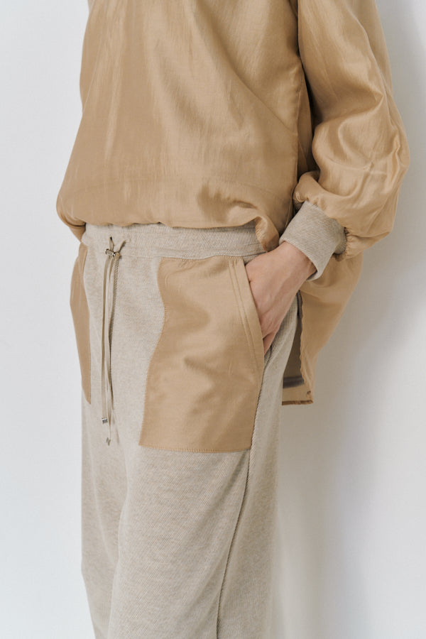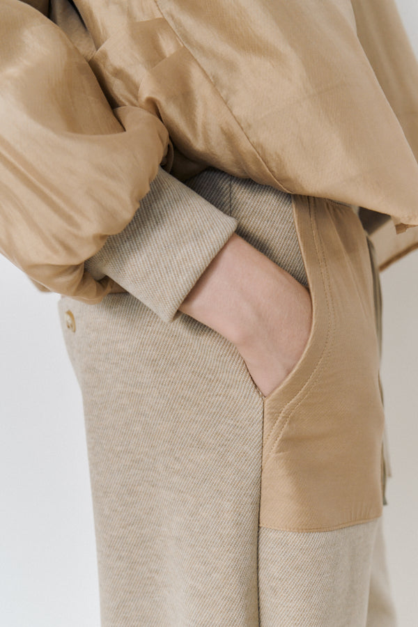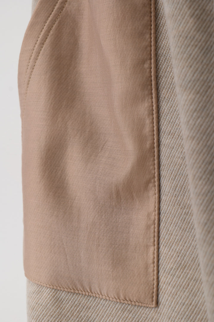さらに、ポケットにはシアー素材をドッキングし、さりげない異素材感でモードなアクセントを加えています。