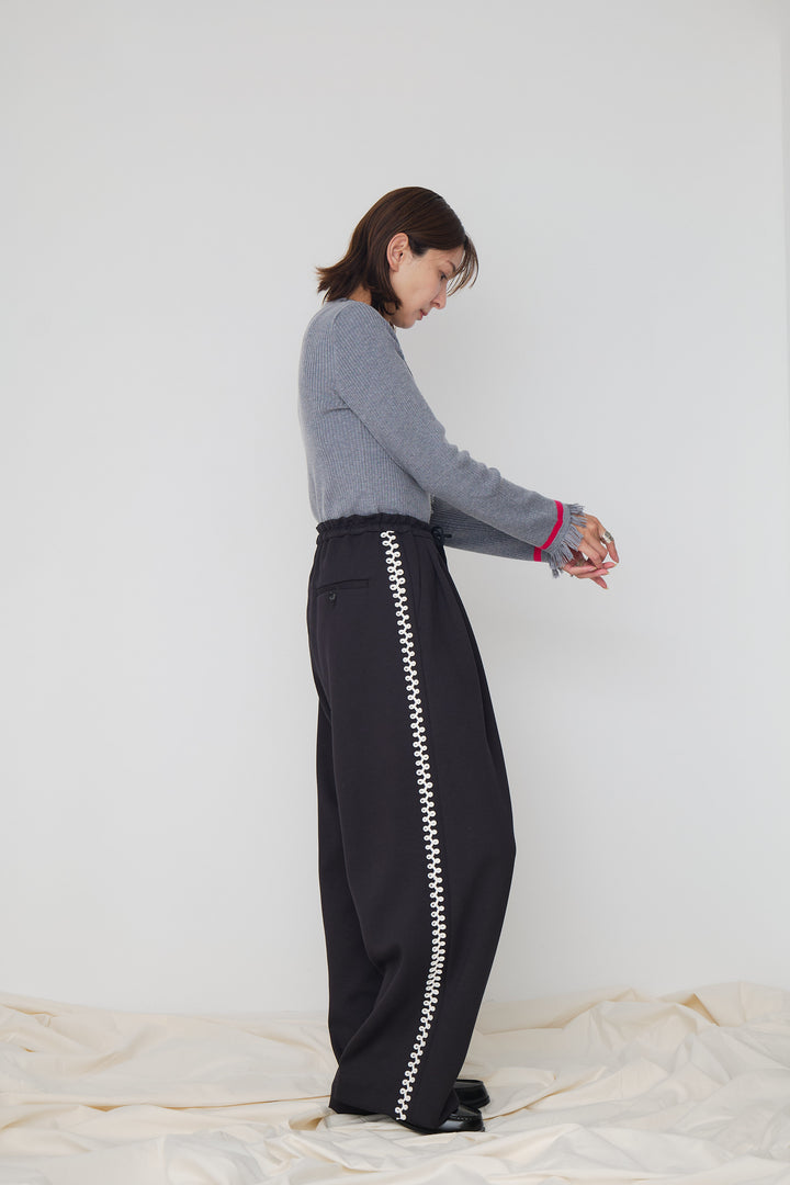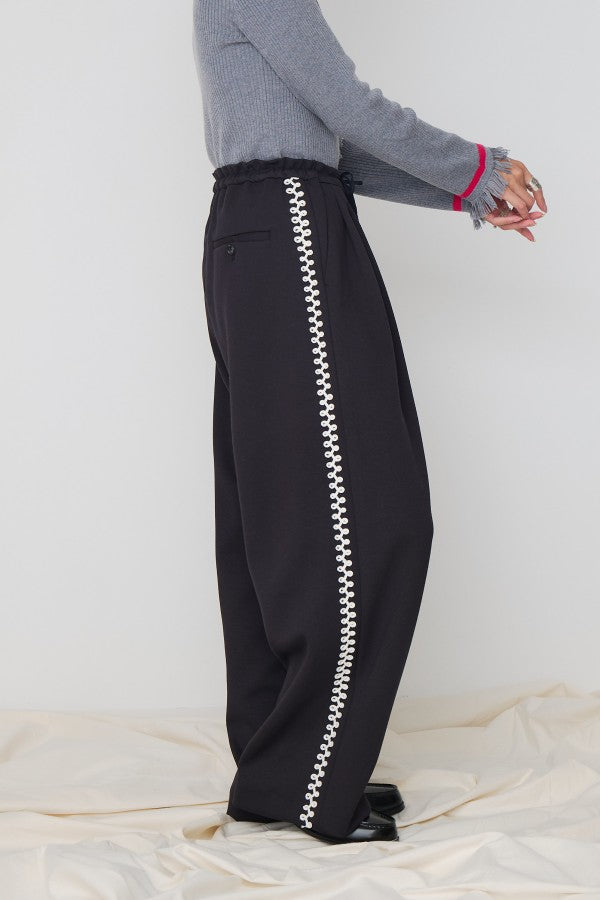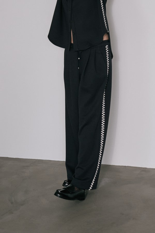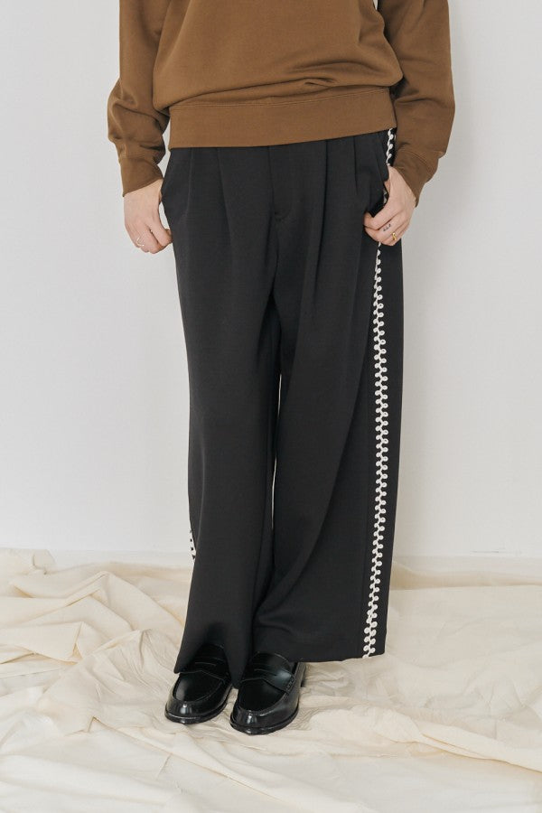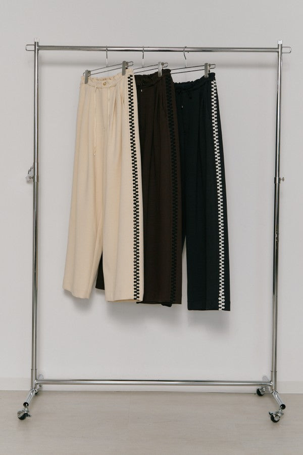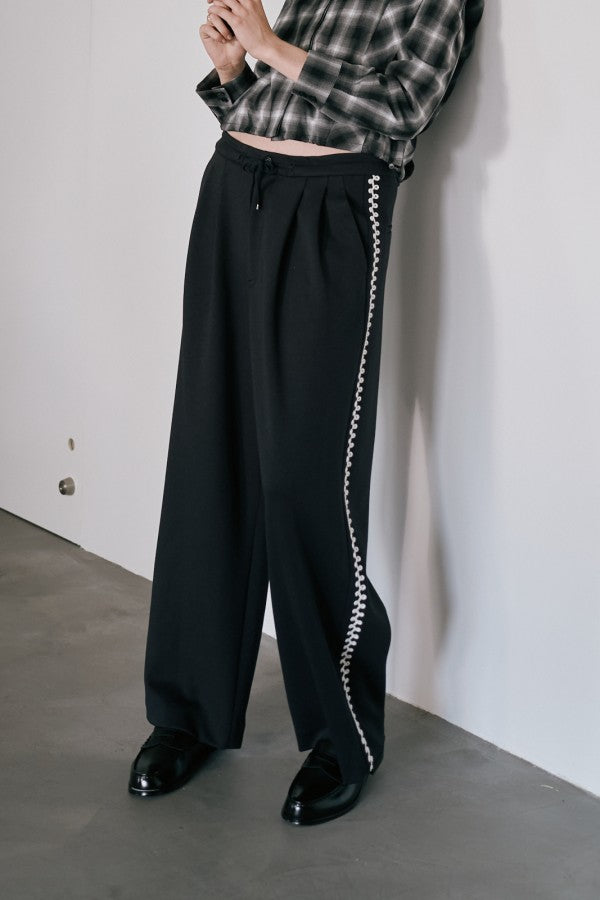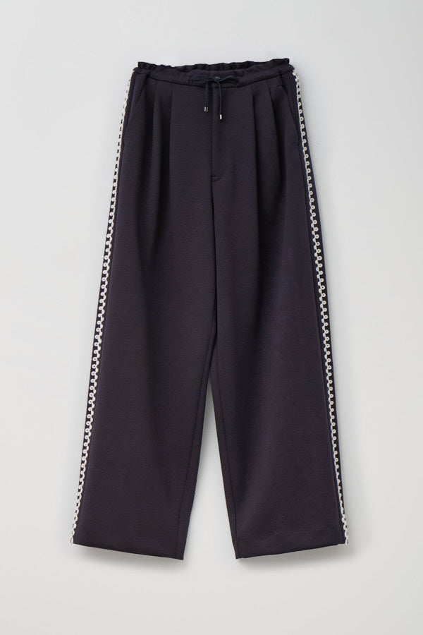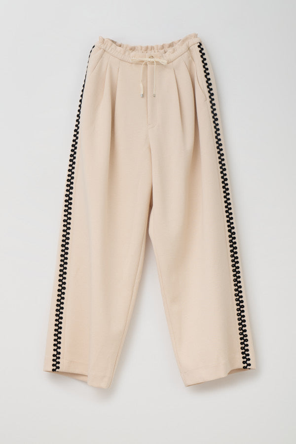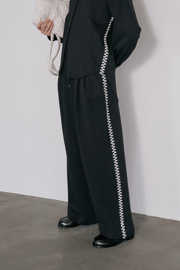 サイドラインにオリジナルのコード刺繍をあしらったイージーパンツ。