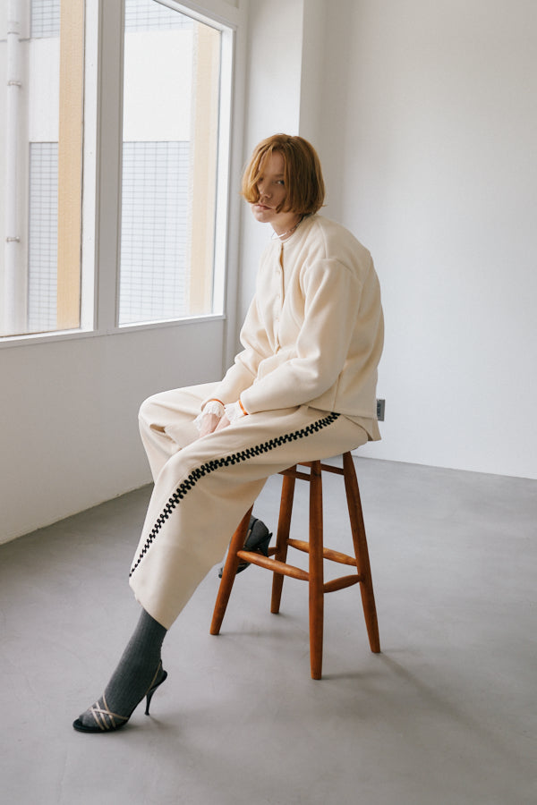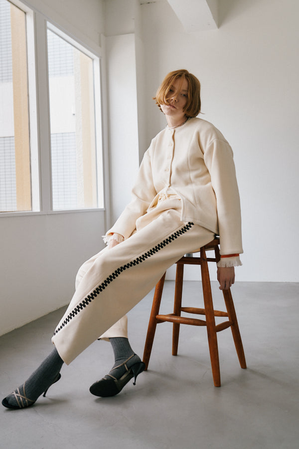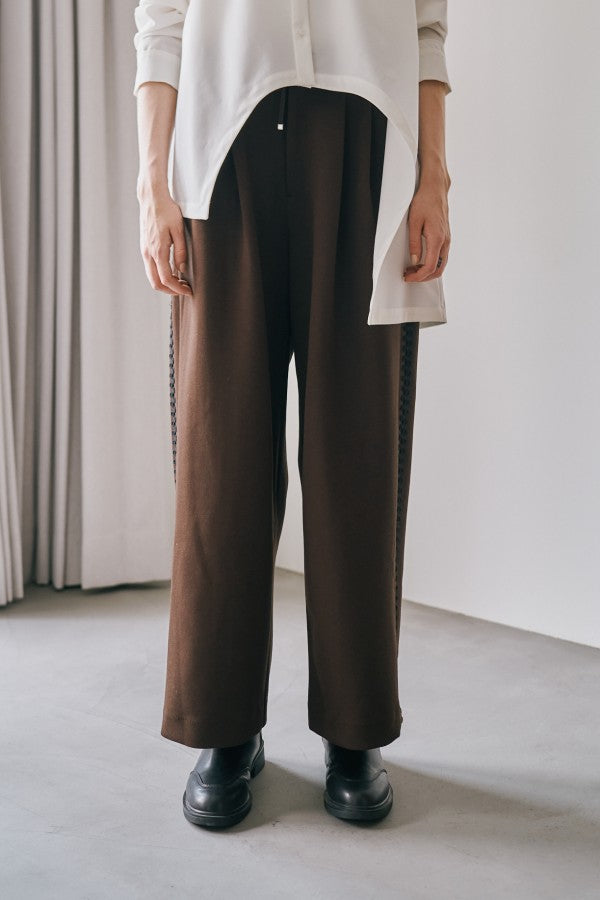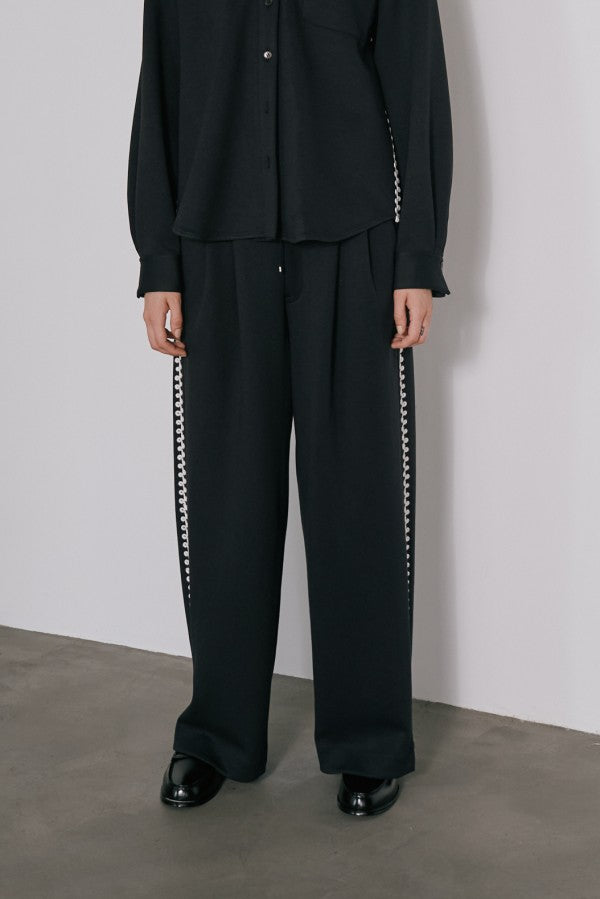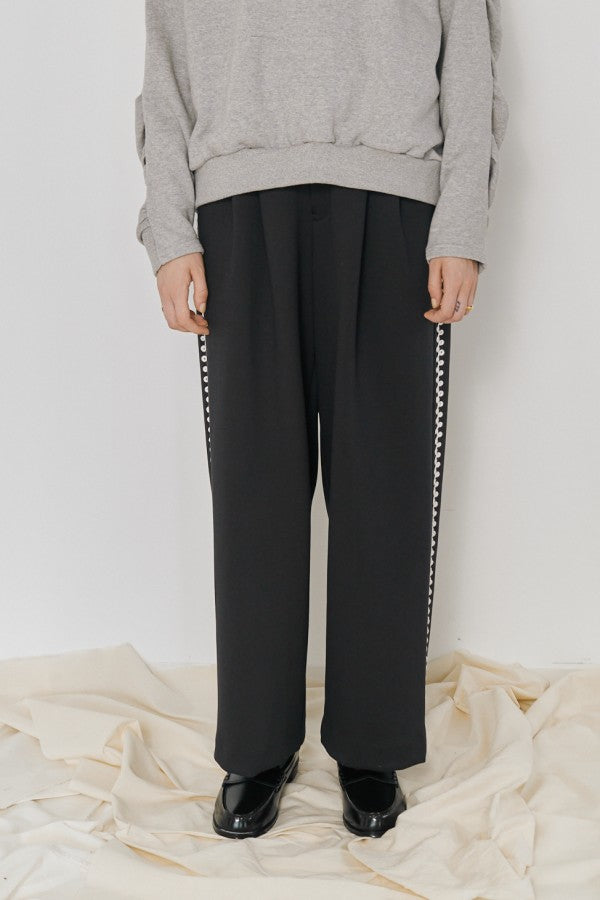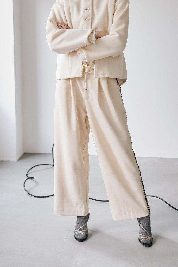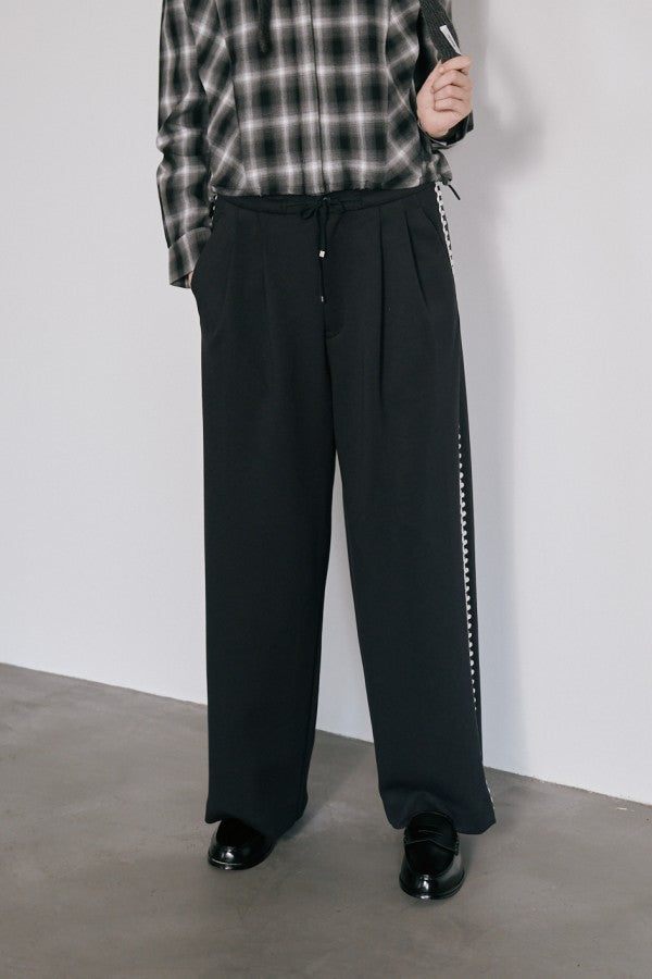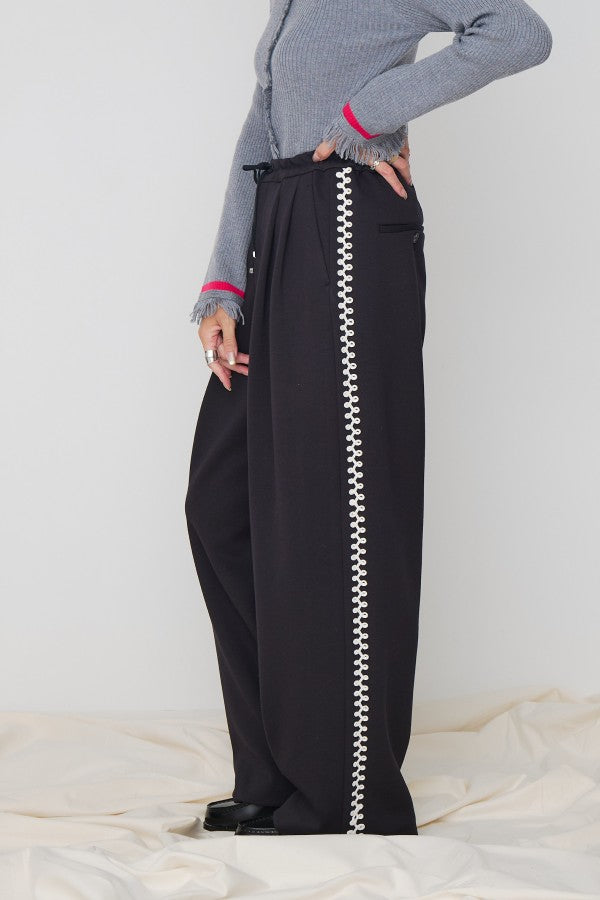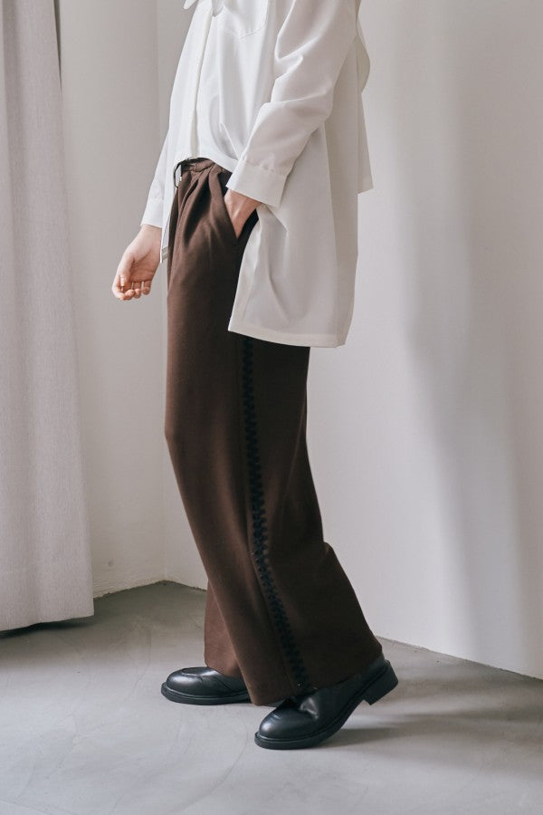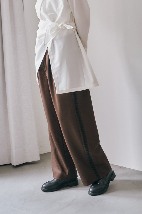サイドラインにオリジナルのコード刺繍をあしらったイージーパンツ。