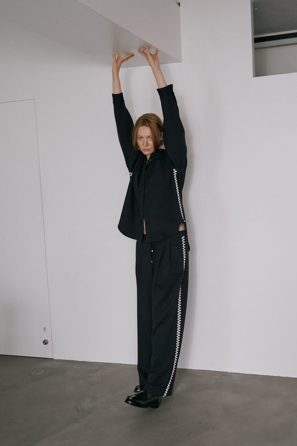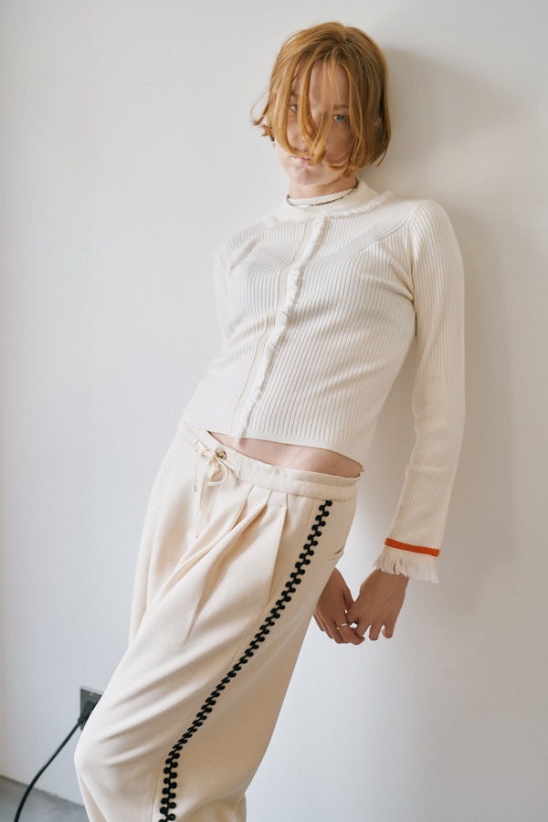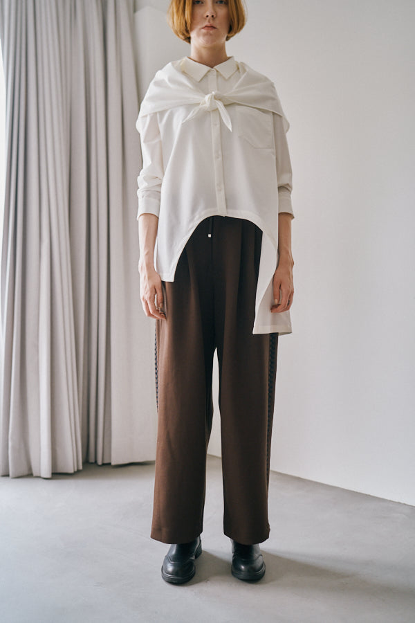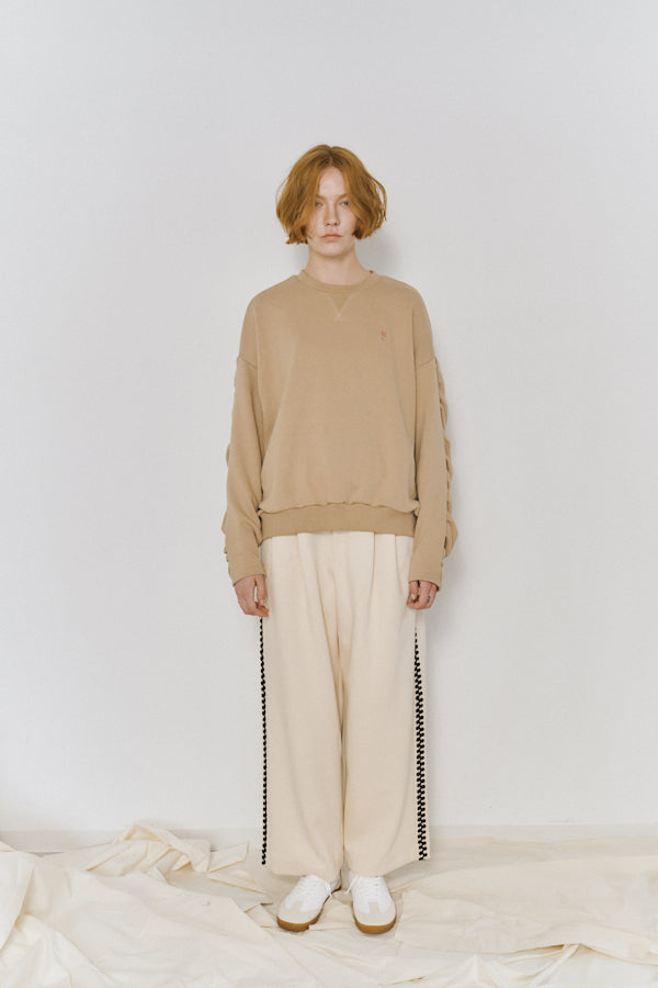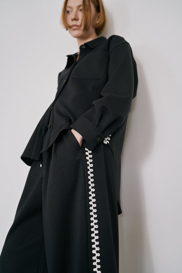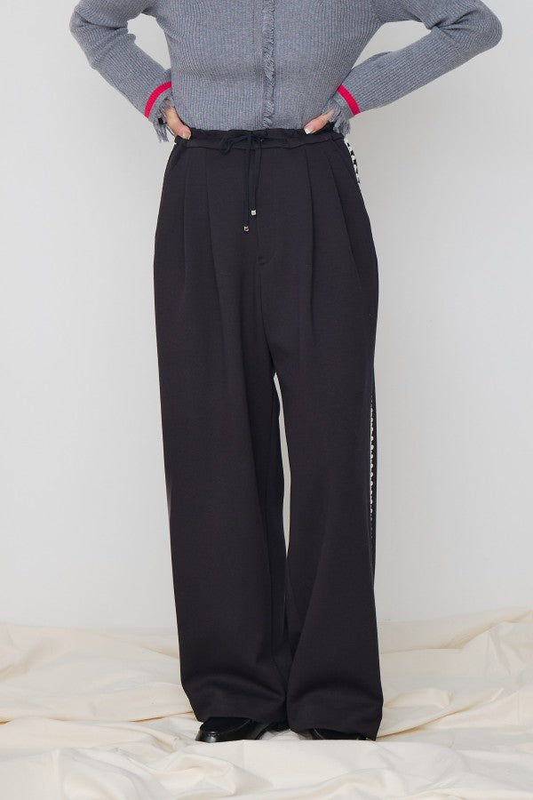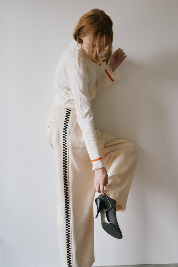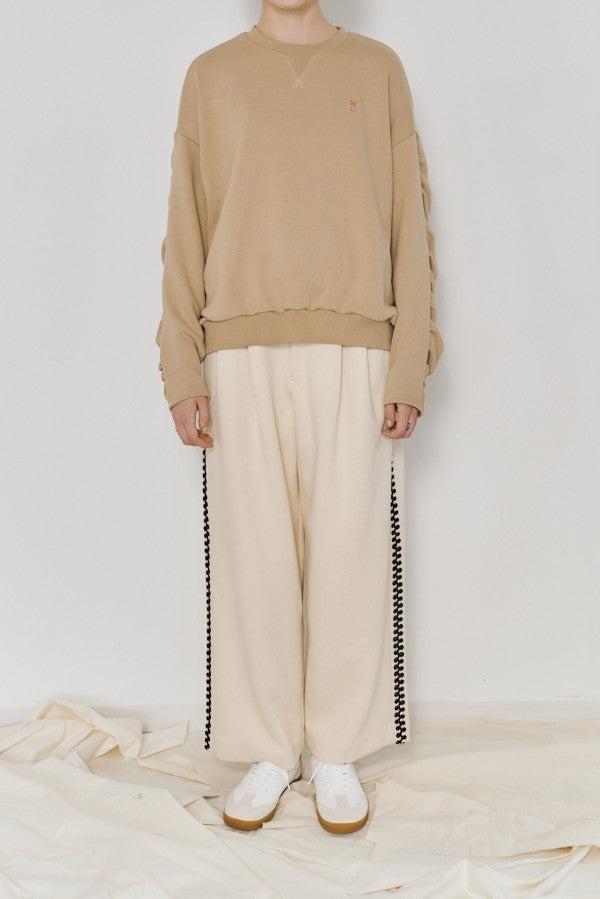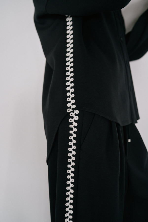 サイドラインにオリジナルのコード刺繍をあしらったイージーパンツ。