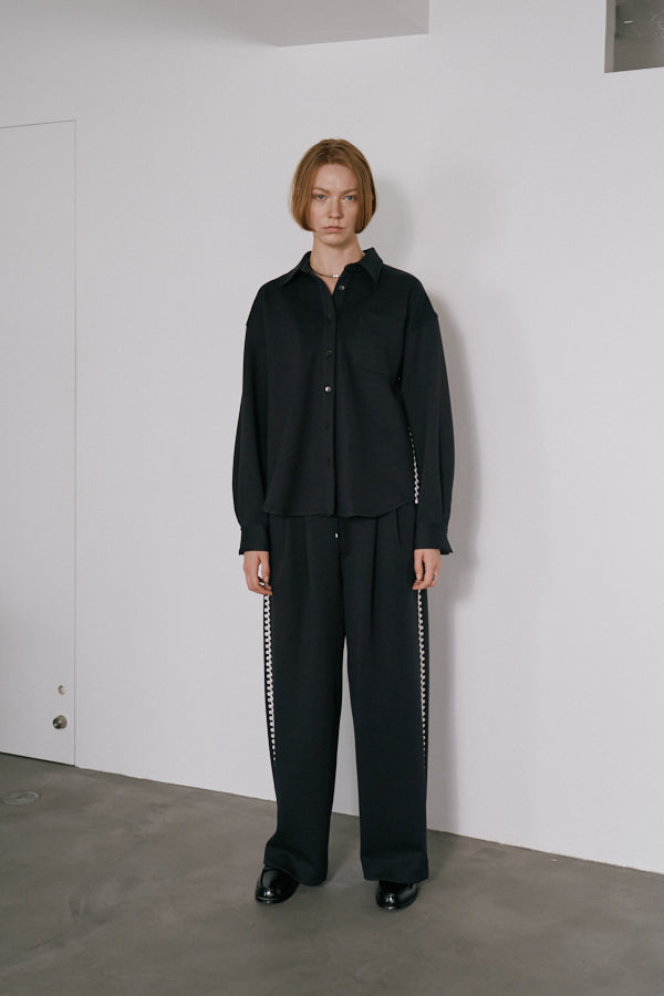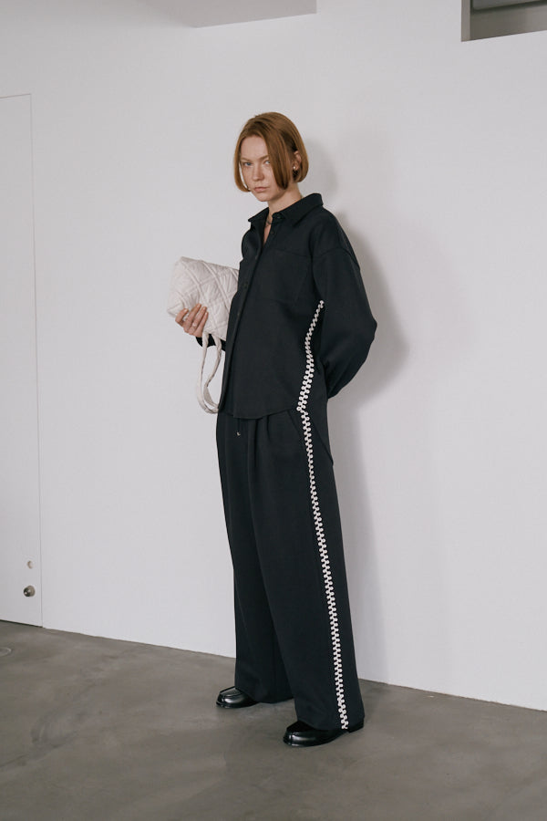 同素材のパンツも展開しており、セットアップでの着こなしもおすすめ。シャツとしても羽織りとしても使える汎用性の高さで、デイリーからお出かけまで幅広いシーンに対応。カラー展開も豊富で、ベーシックにもトレンド感のあるスタイルにも合わせやすいアイテムです。