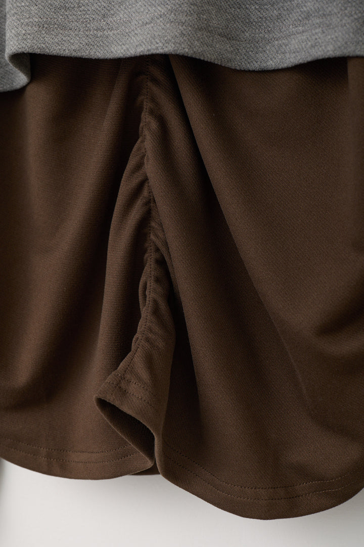 インナー部分はフロントにギャザーを寄せたデザインで、立体感と女性らしいニュアンスをプラス。