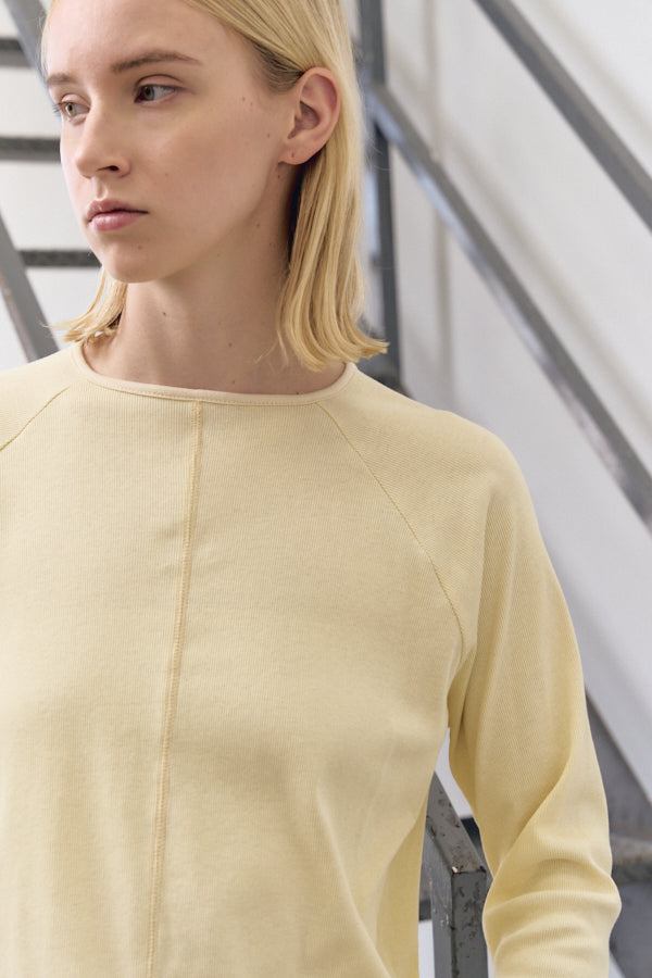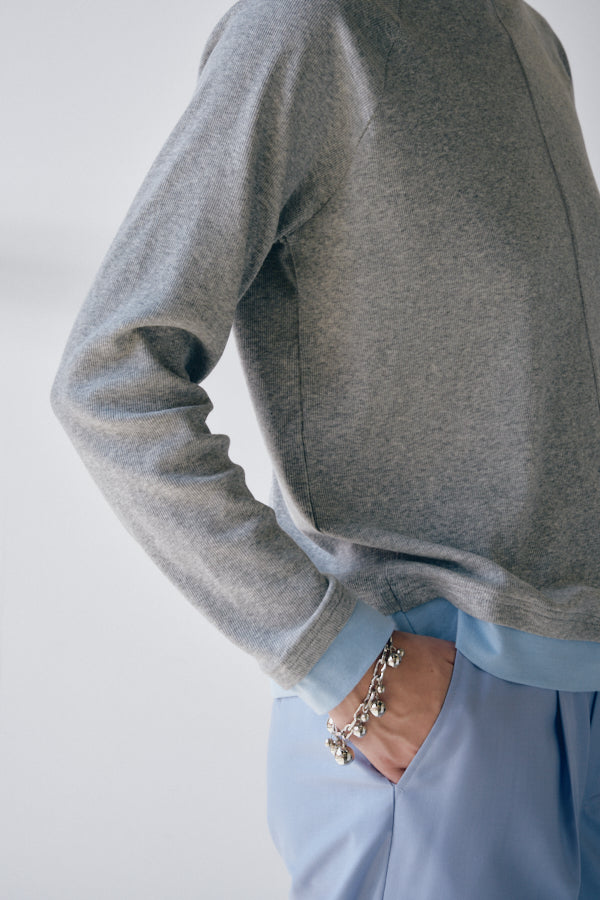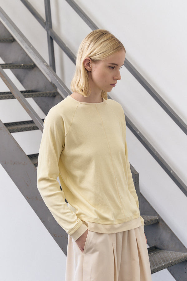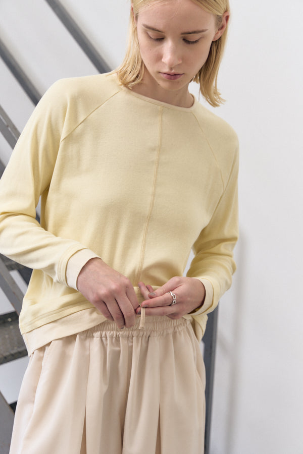 柔らかな肌触りのテレコカットソー素材を採用し、伸縮性があり着心地も抜群。カジュアルなボトムと合わせてもきちんと感があり、スカートやスラックスと組み合わせればモードな雰囲気に。