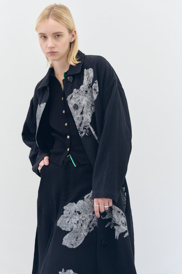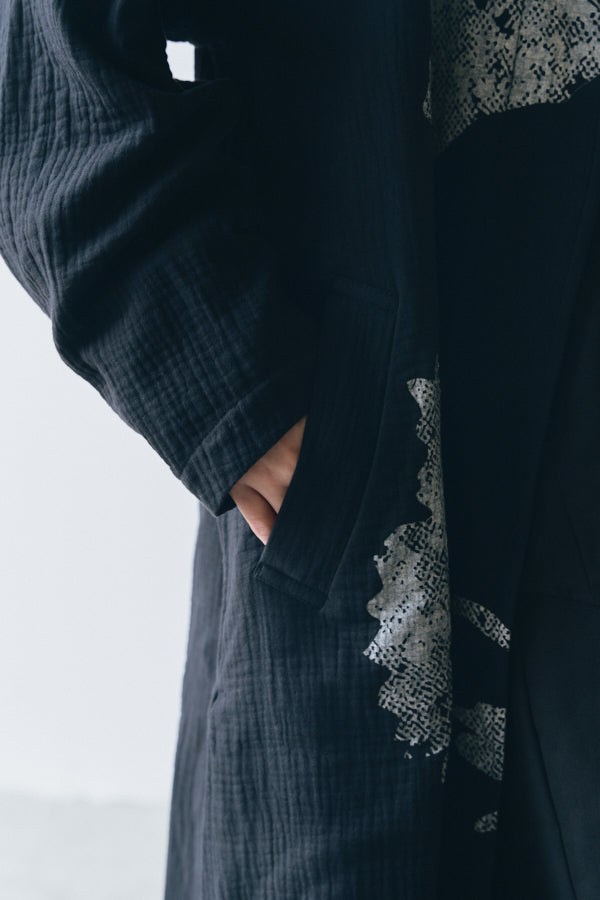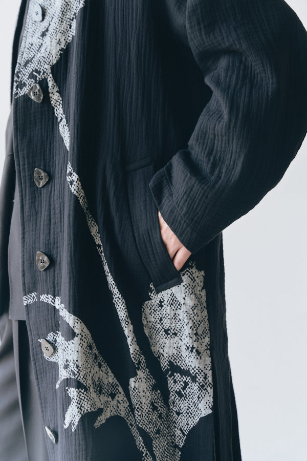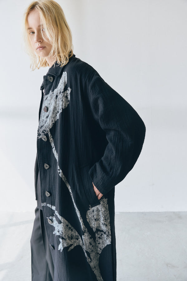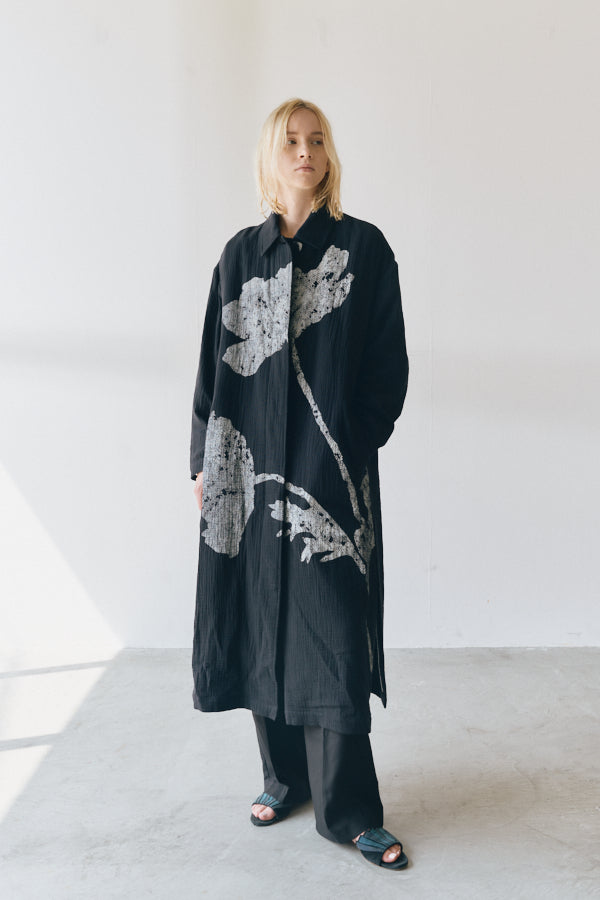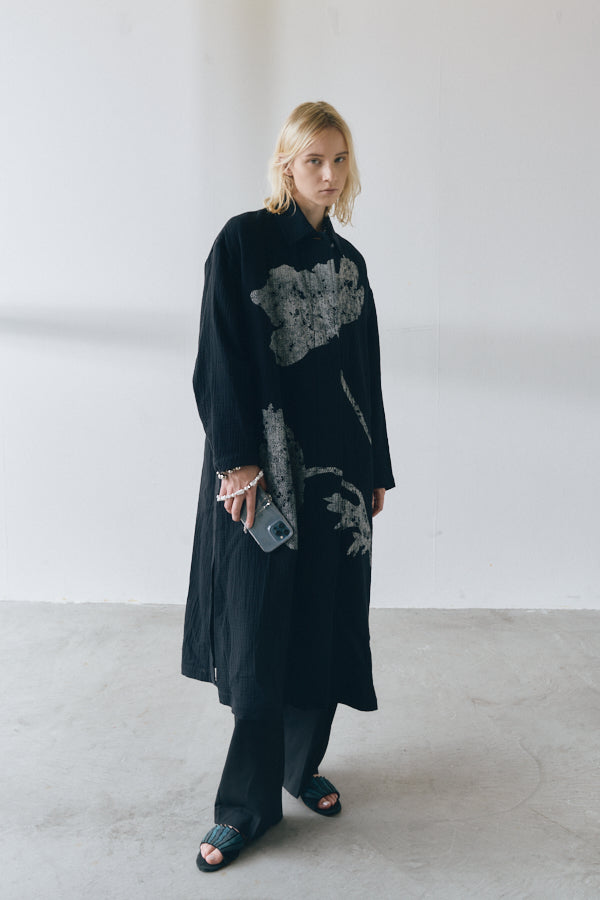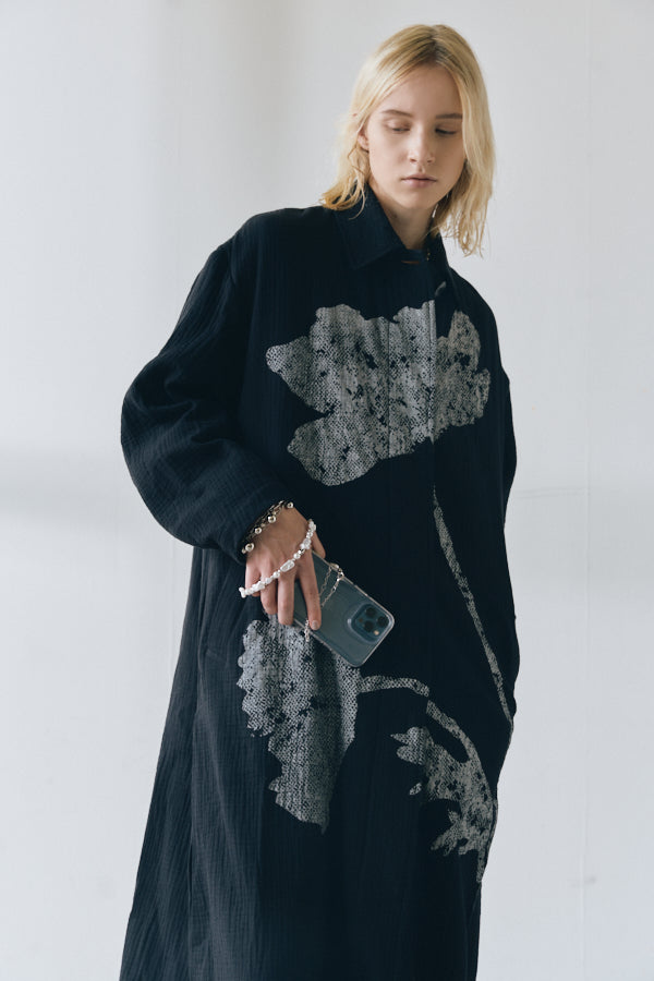 フラワープリントが印象的なダブルガーゼ素材のコート。