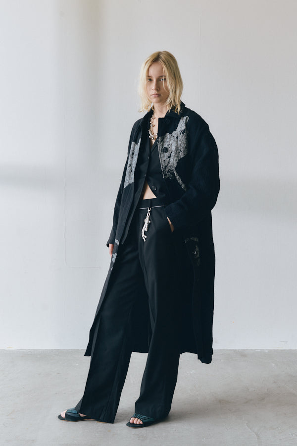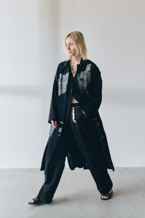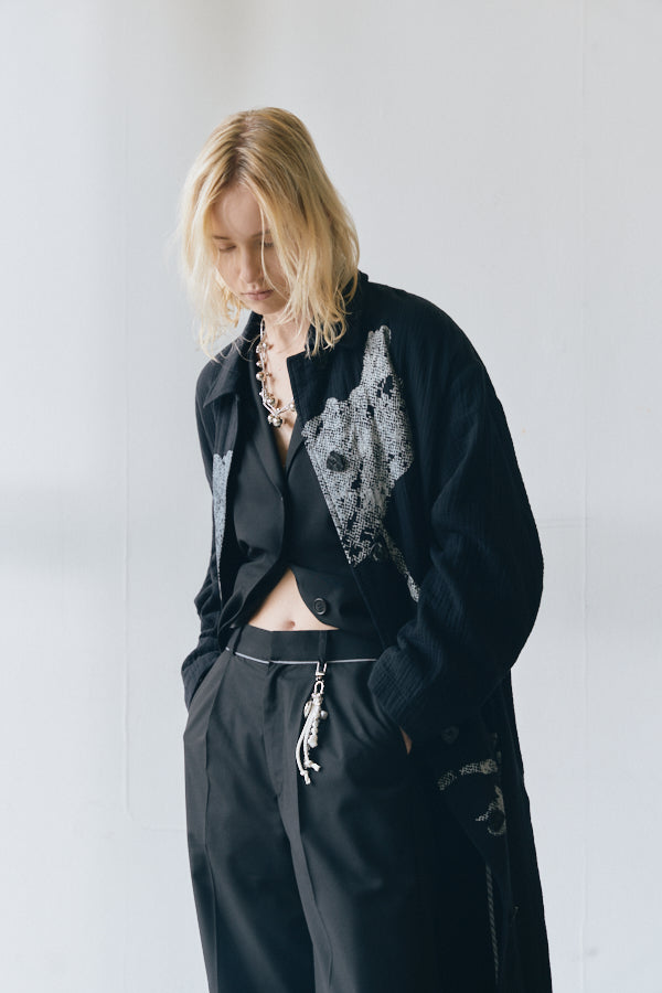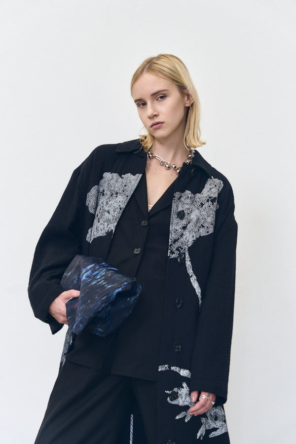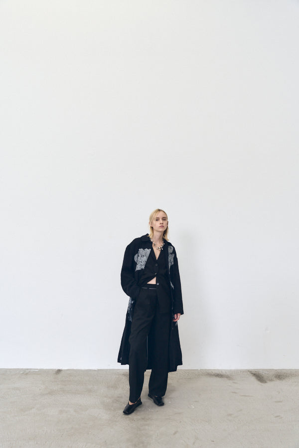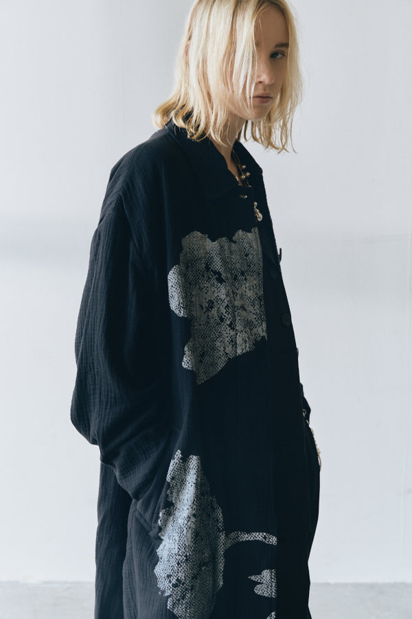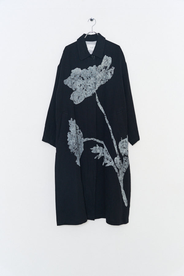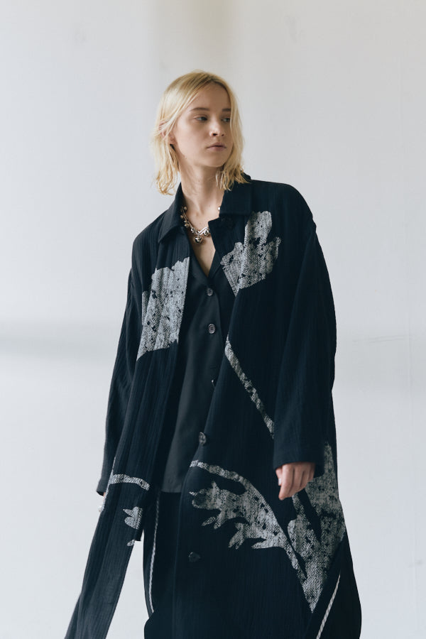 フラワープリントが印象的なダブルガーゼ素材のコート。