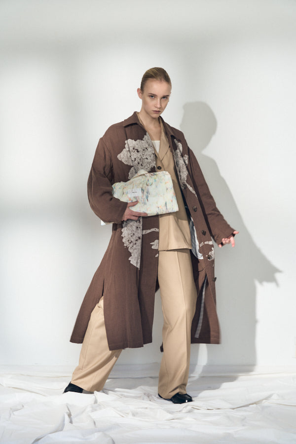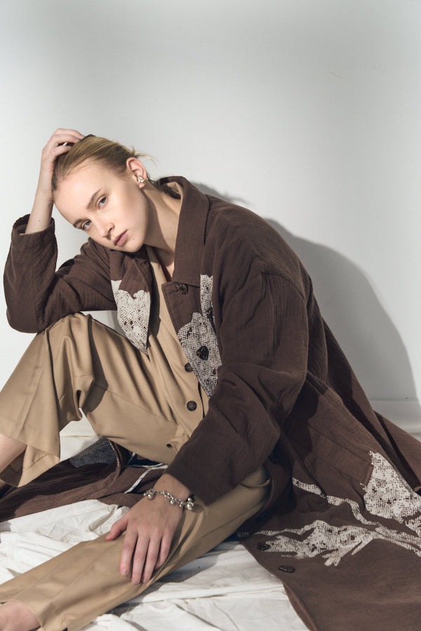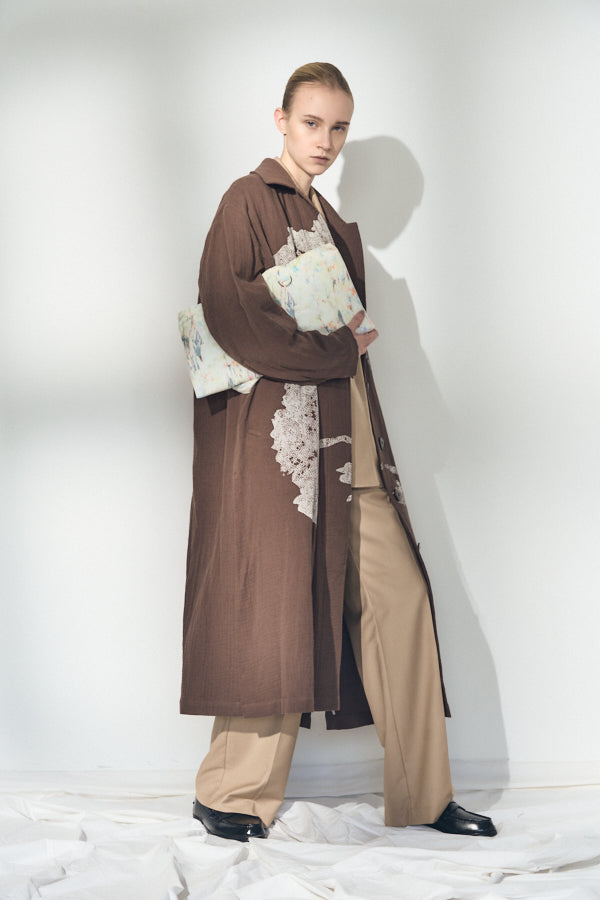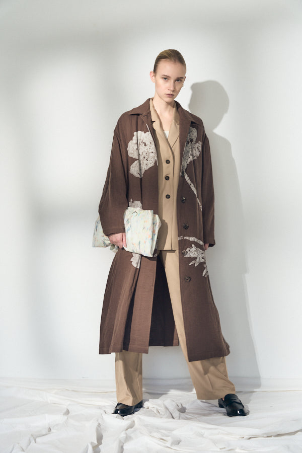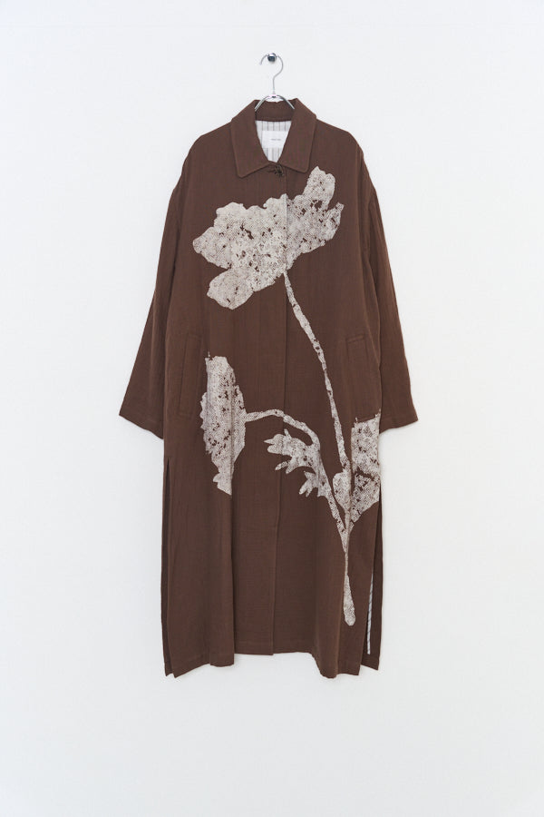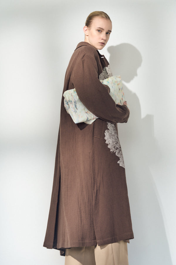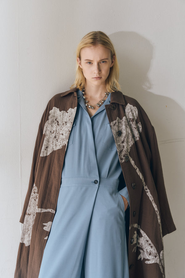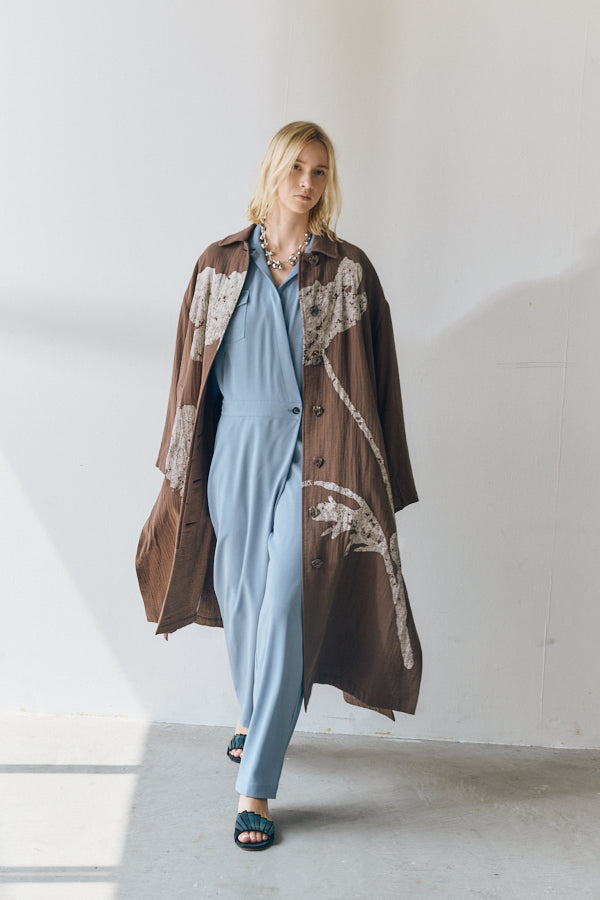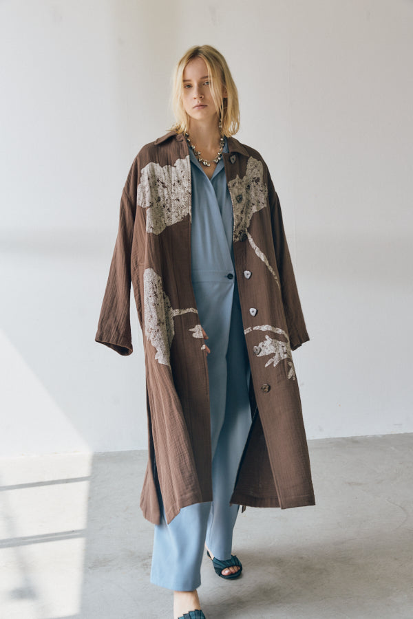 フラワープリントが印象的なダブルガーゼ素材のコート。