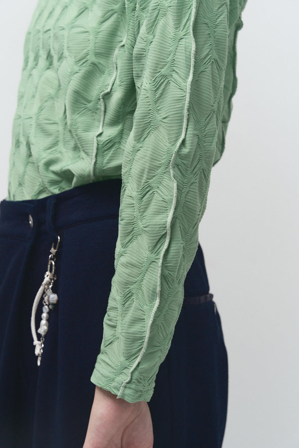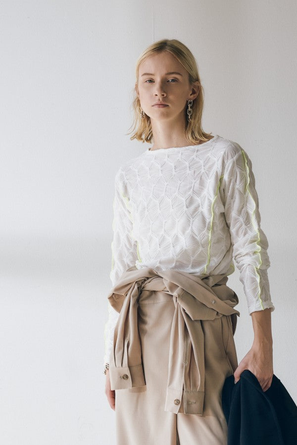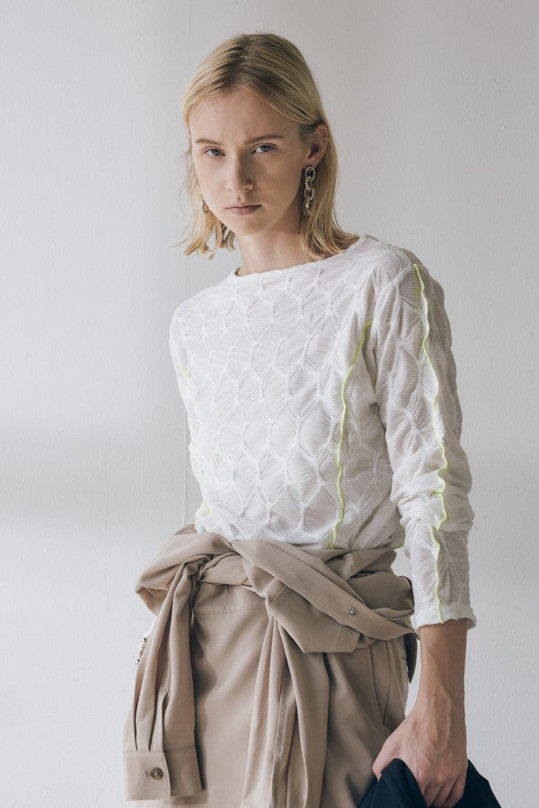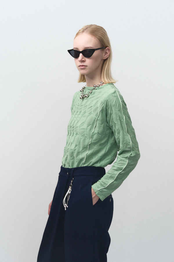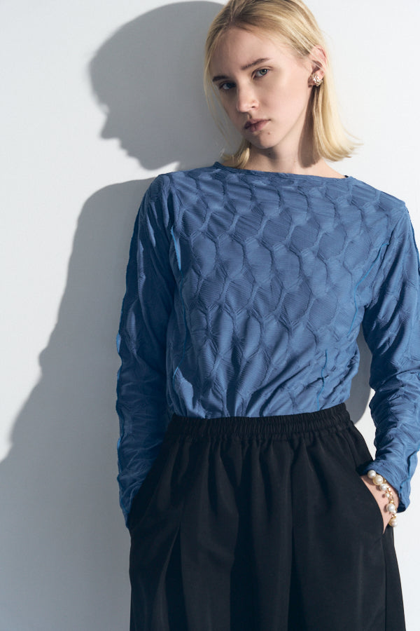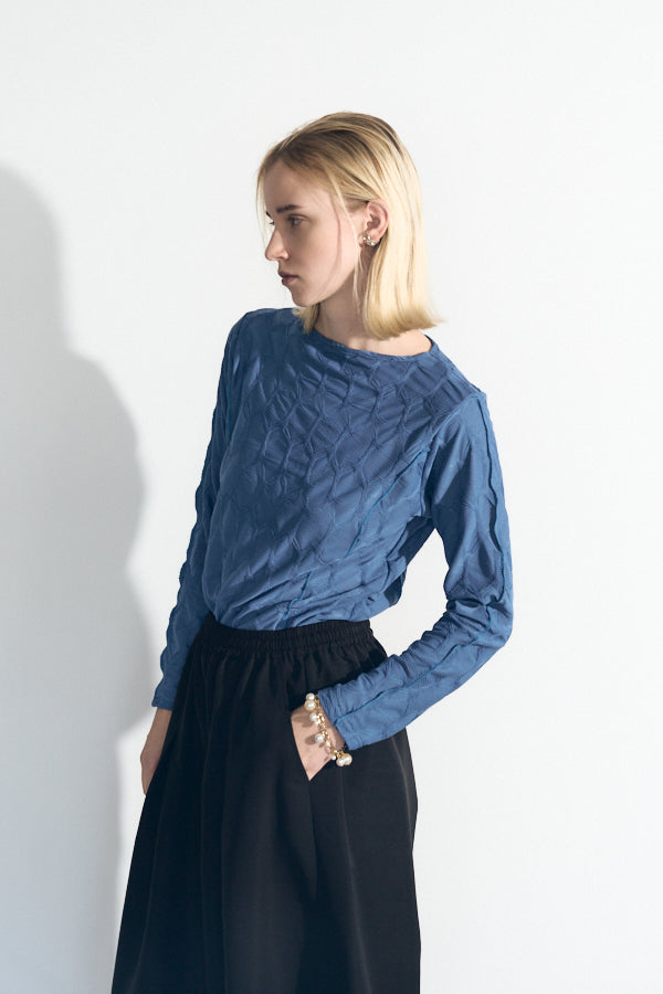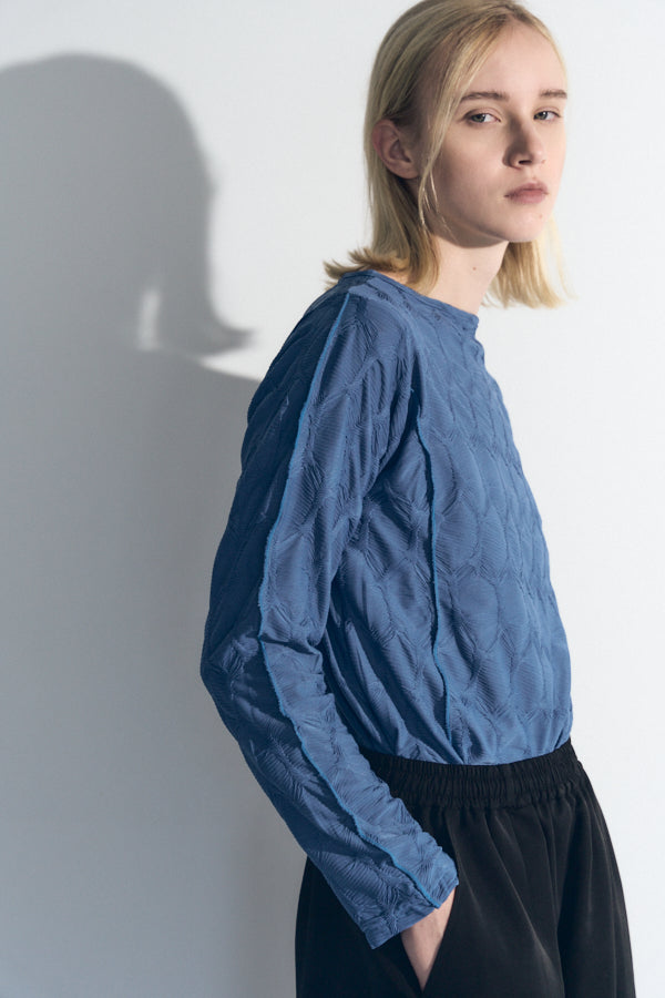 表情豊かなジャガード素材を使用したカットソー。立体感のある生地がシンプルなシルエットに奥行きを与え、着るだけでスタイリングに存在感をプラスしてくれます。