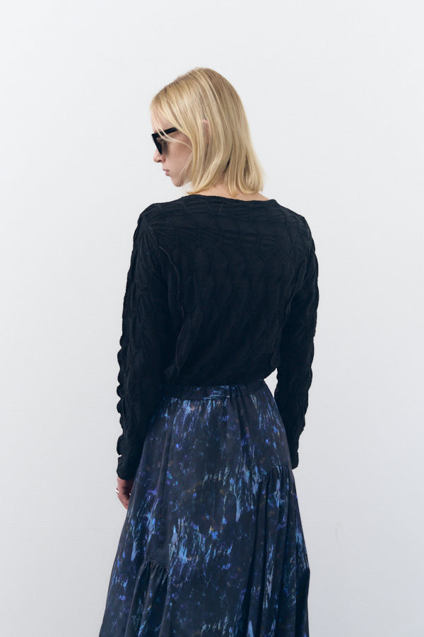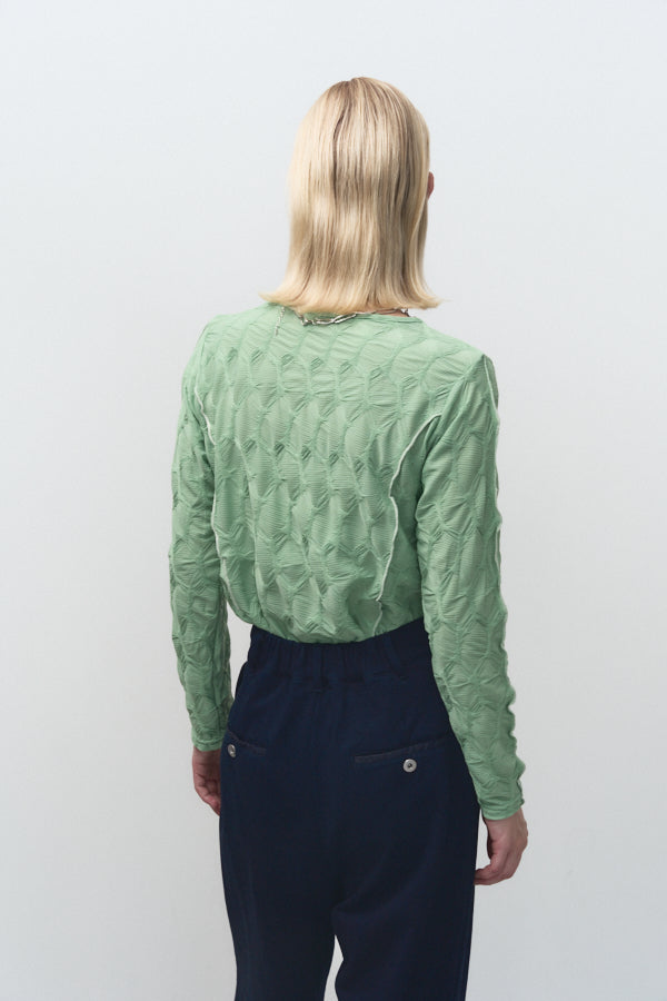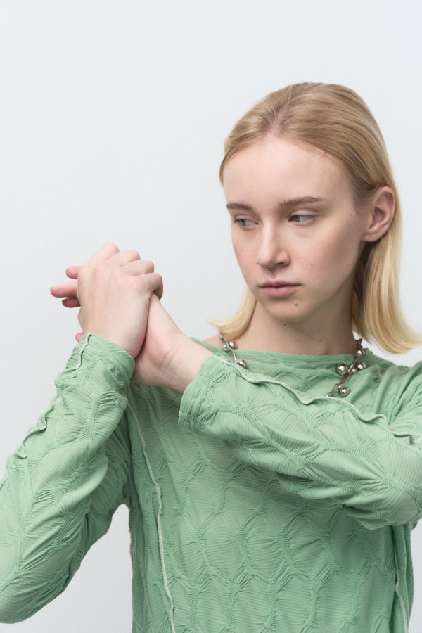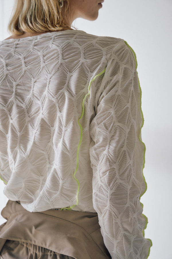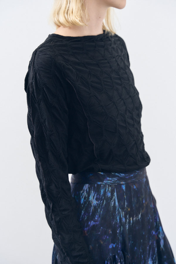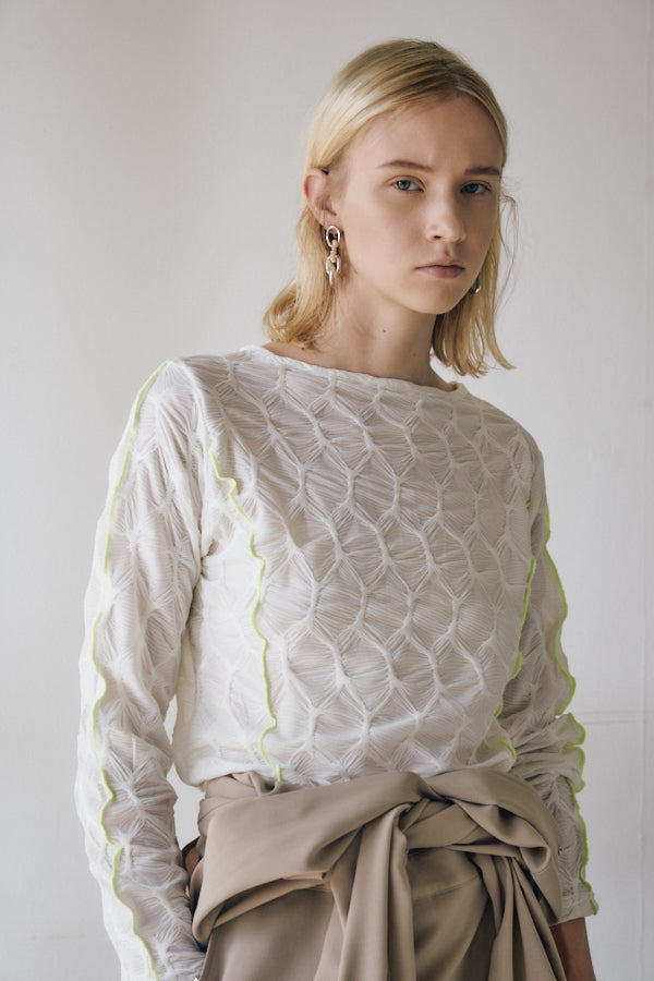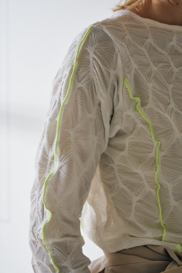 表情豊かなジャガード素材を使用したカットソー。立体感のある生地がシンプルなシルエットに奥行きを与え、着るだけでスタイリングに存在感をプラスしてくれます。