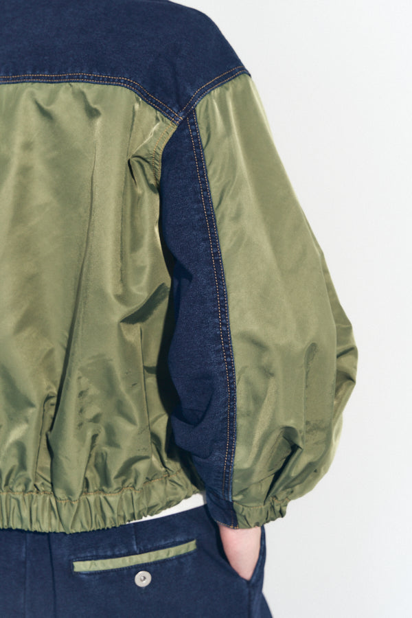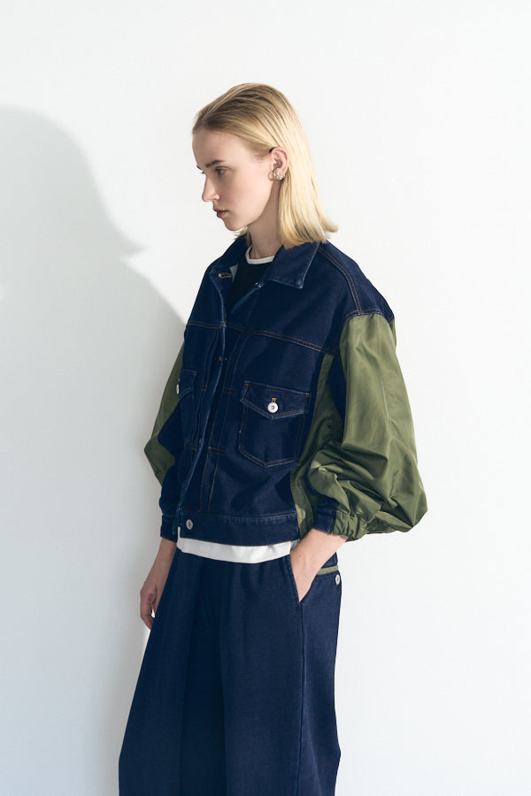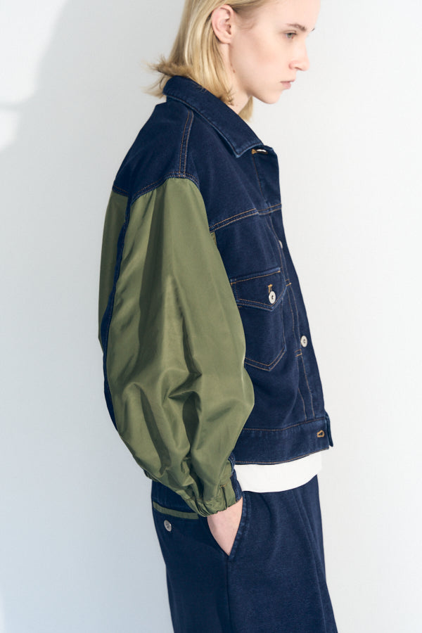 カジュアルにもモードにも取り入れやすく、柔らかさと軽やかさを兼ね備えたGジャンとナイロンをドッキングさせたデイリーに活躍するアイテムです。