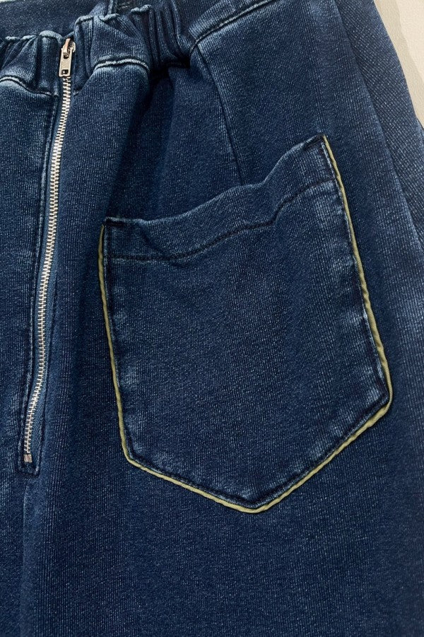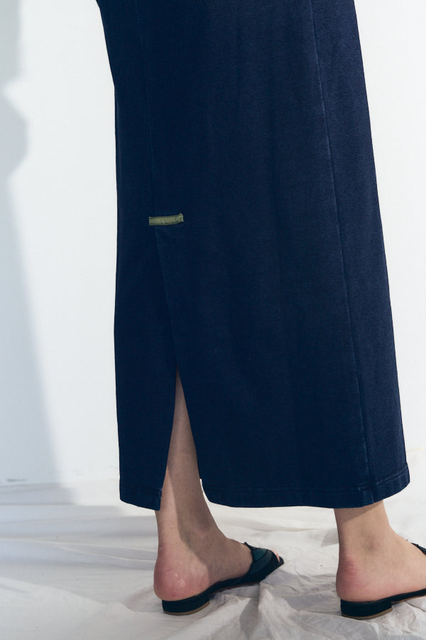 デニム風のインディゴ染め裏毛カットソーを採用し、柔らかく履き心地の良い一本。