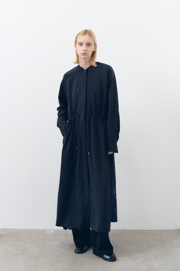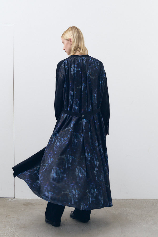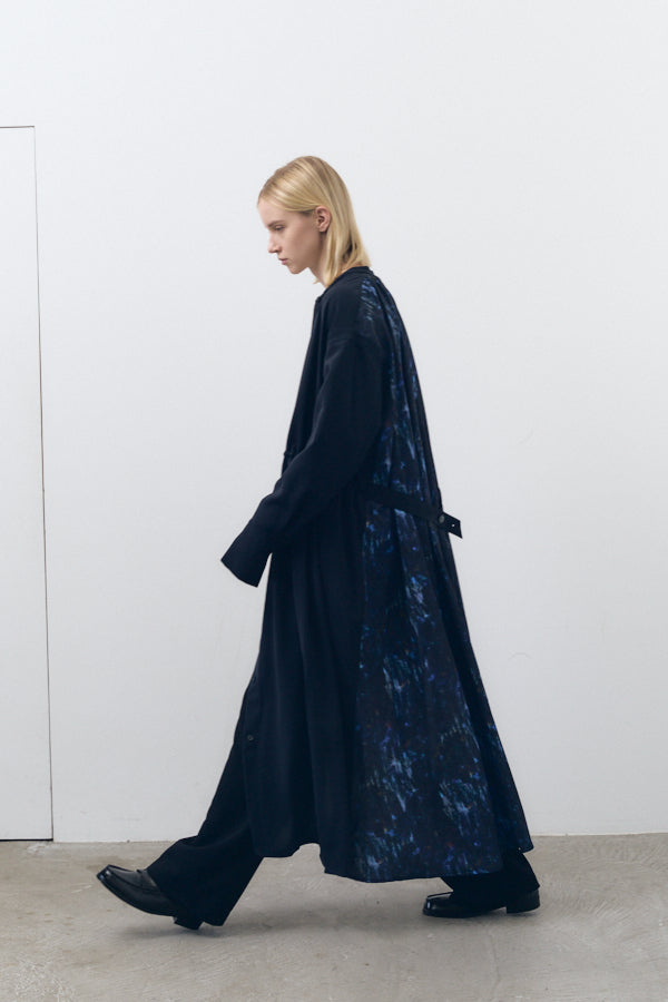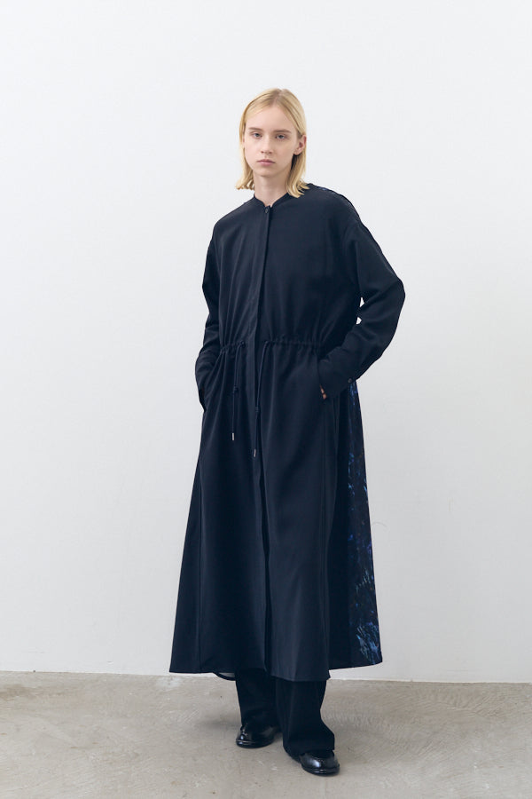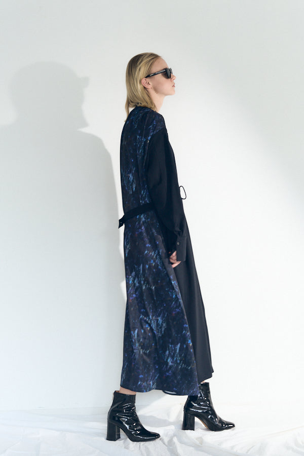 こちらは、オリジナルのプリント生地をドッキングさせたコートワンピース。