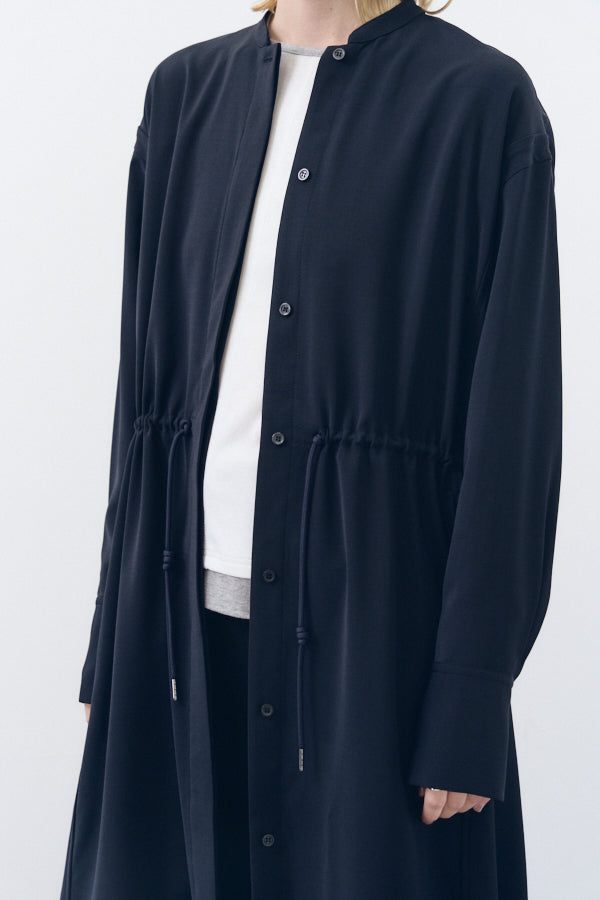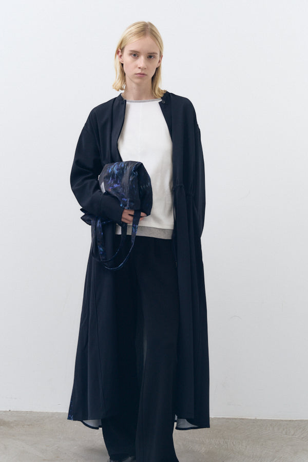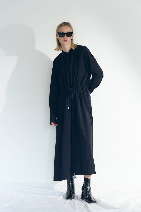 フロントを開ければライトコートとして、閉じればワンピースとして着られる2WAY仕様。ウエストをシェイプさせることでスタイルアップ効果もあり、女性らしさとモード感を兼ね備えています。