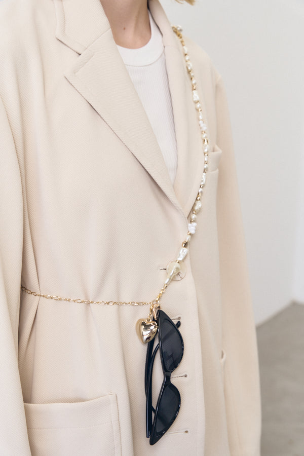 チェーン単体でも存在感のあるアクセサリーとして、スタイリングをさらに格上げ。取り外しが可能なため、パールチョーカーとしてもお使いいただけ、シーンや気分に合わせて自在にアレンジできます。